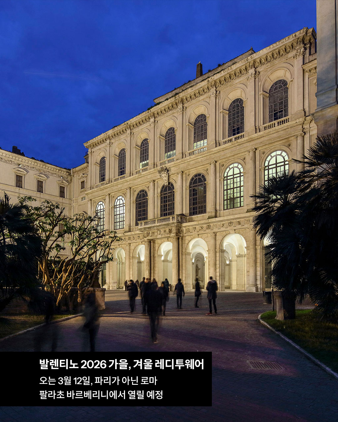 피엘파올로 피촐리 재임 시절이었던 2022 가을 쿠튀르 쇼 이후 처음으로 로마에서 선보이는 발렌티노 2026 가을, 겨울 컬렉션은 17세기 바로크 궁전인 팔라초 바르베리니에서 개최됩니다.