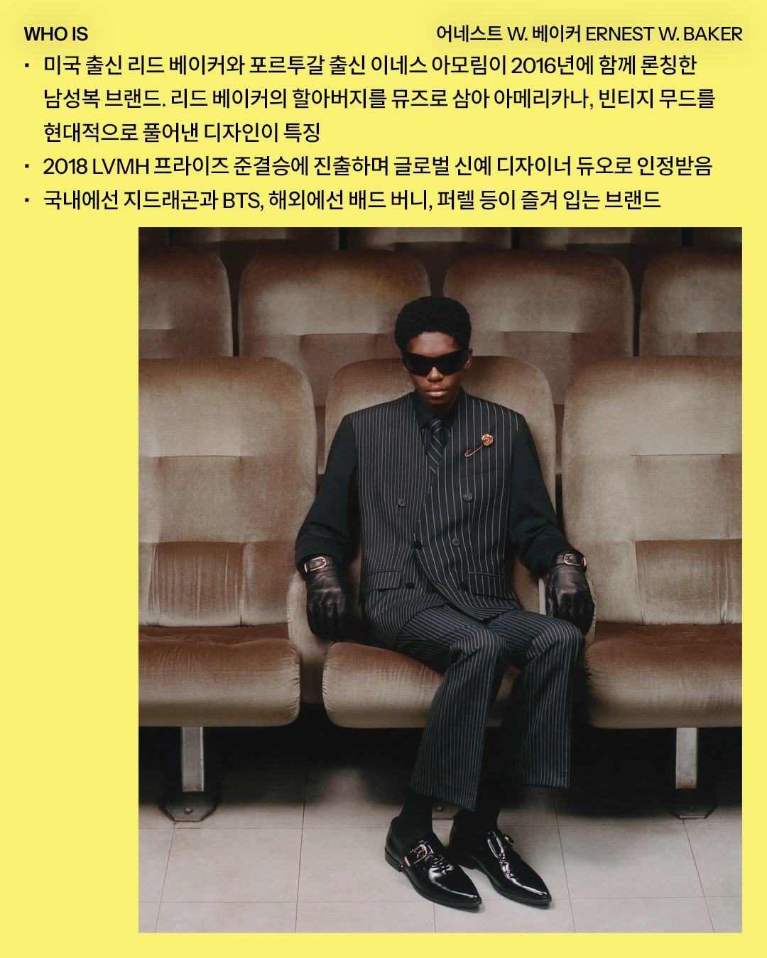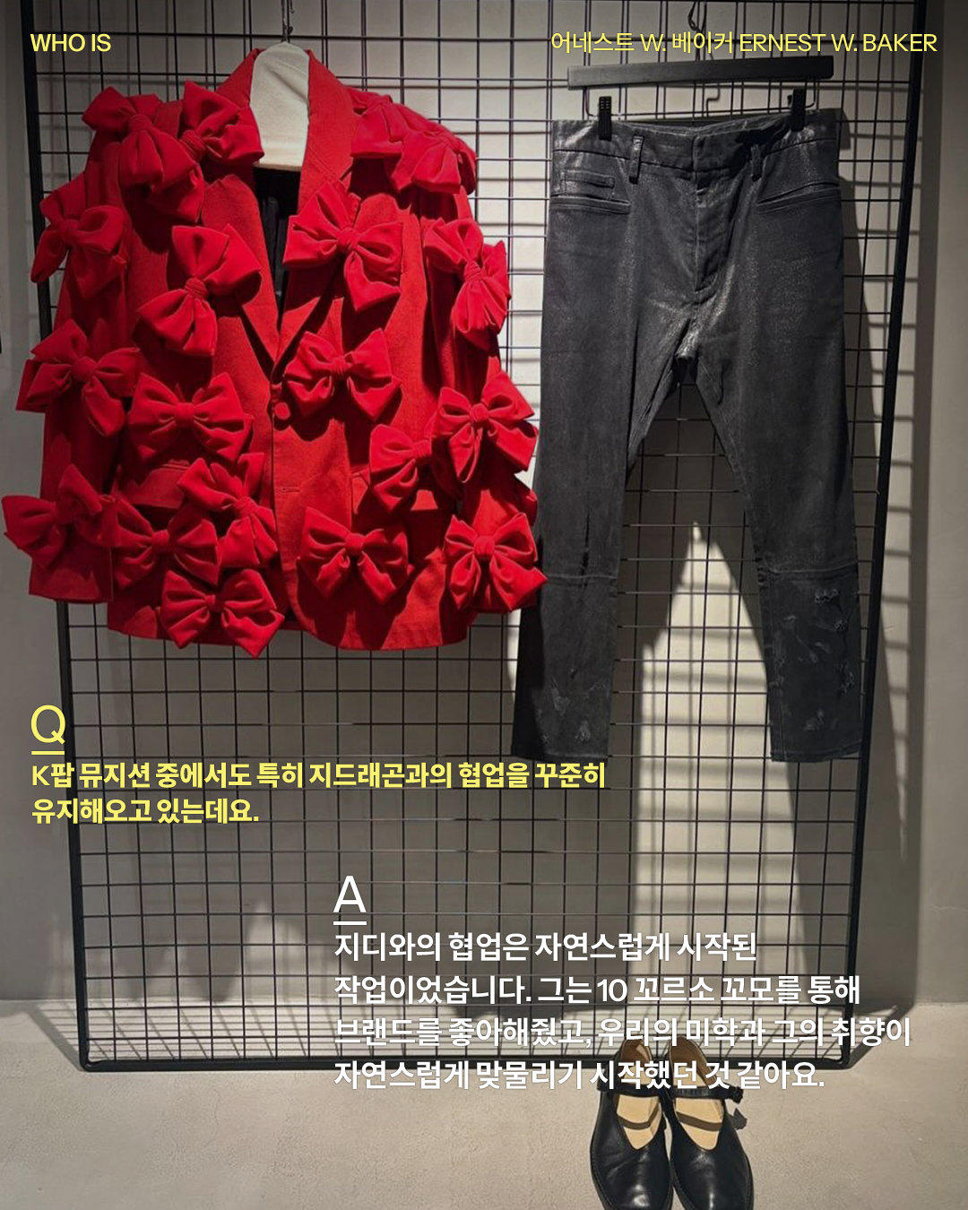 첫 국내 행사를 기념해 서울을 찾은 어네스트 W. 베이커의 디자이너 리드 베이커와 이네스 아모림, 두 사람에게 지디, BTS와의 협업 비하인드부터 평소 영감을 찾는 곳까지 물었습니다.
