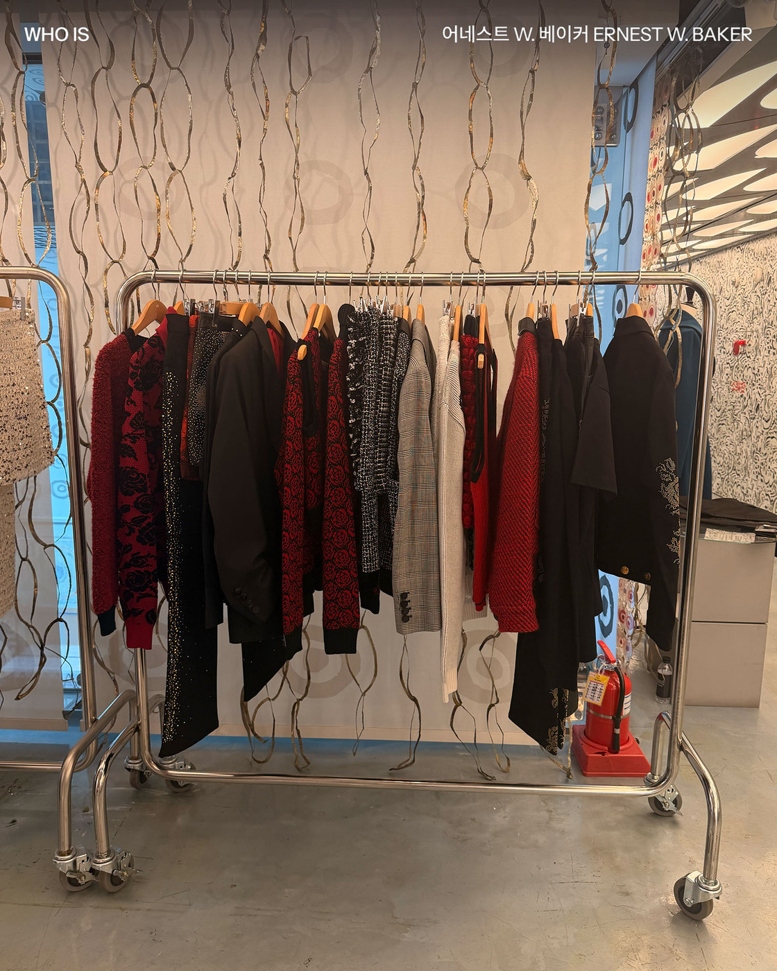 퍼렐, 레이디 가가가 입은 커스텀 피스들을 직접 입어보고 구매할 수 있다? 10 꼬르소 꼬모 서울에서 열린 어네스트 W. 베이커의 첫 국내 행사에 다녀왔습니다. 이곳에서는 어네스트 W. 베이커가 수많은 스타들을 위해 제작한 커스텀 피스들을 직접 만져보고 구매할 수 있는데요. 그 뿐만 아니라 어디에서도 볼 수 없던 브랜드의 아카이브 피스들을 경험할 수 있습니다.