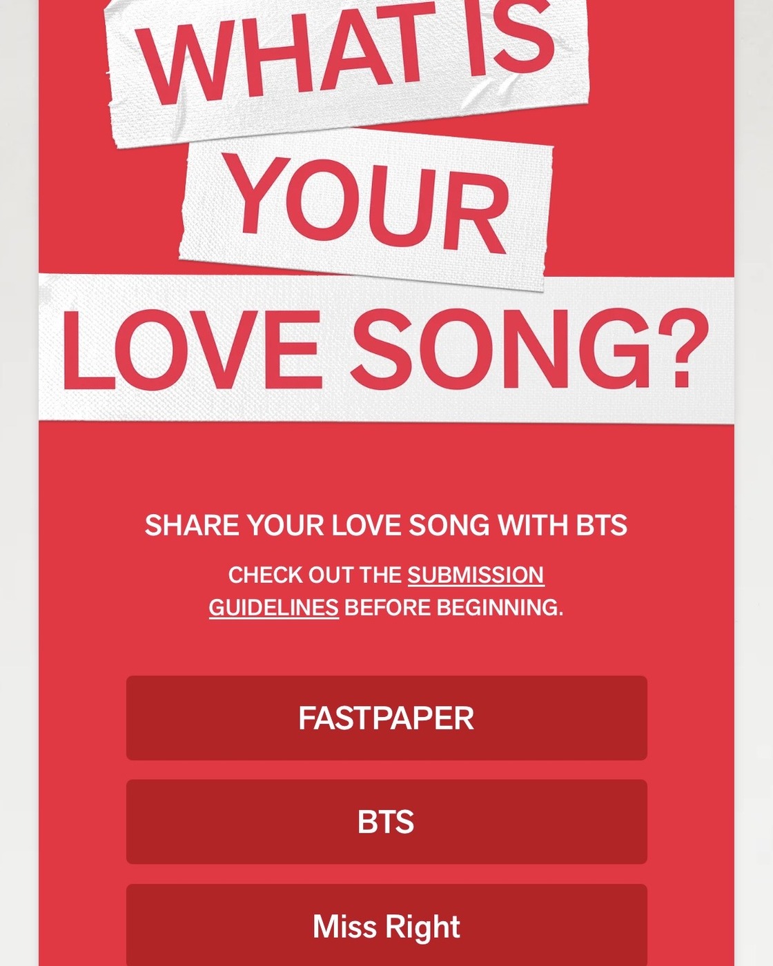 지금 코엑스는 달콤 로맨틱한 장미 선물이 가득합니다. 밸런타인 데이에 나타난 7,500송이 장미! 장미에 달린 메시지 종이의 QR 코드를 스캔하면 등장하는 건 다름아닌 BTS의 로고인데요. ‘What is Your Love Song?’이란 문구와 함께 패페 친구들의 인생 러브송은 무엇인지 묻고 있죠. 바로 BTS의 컴백을 암시하는 메시지란 추측이 나오고 있습니다. 밸런타인 데이에 초대형 로즈월을 선사한 일곱 남자들 낭만적인 BTS의 컴백이 점점 기대되네요.