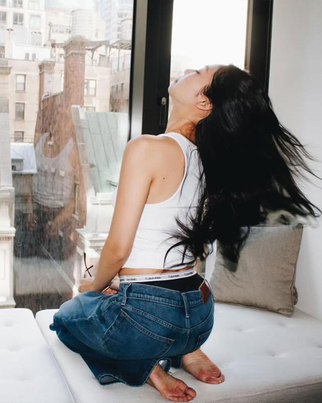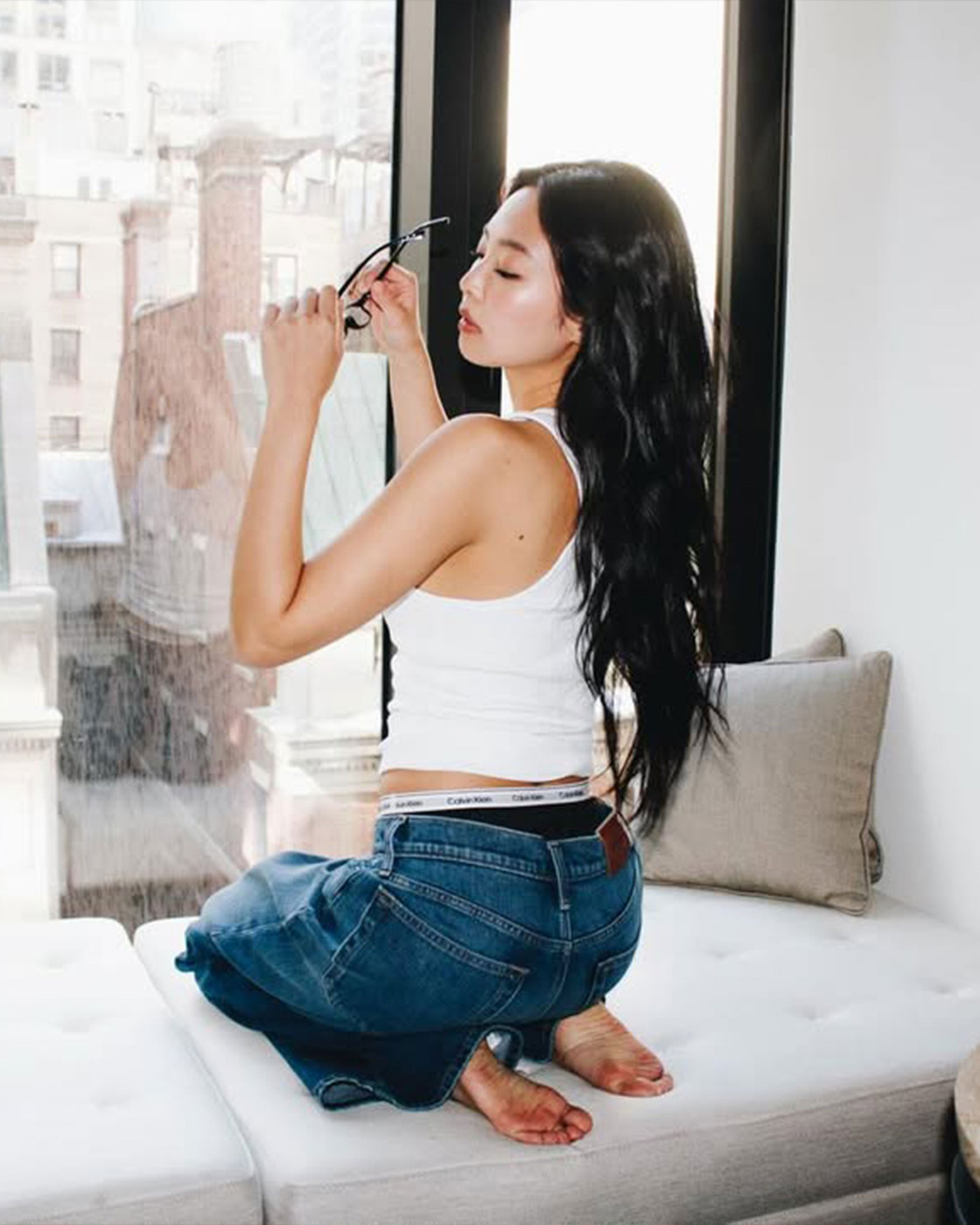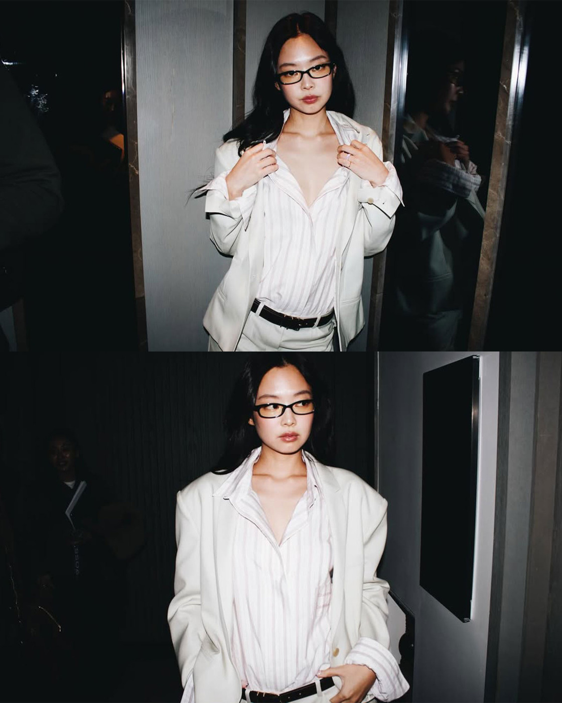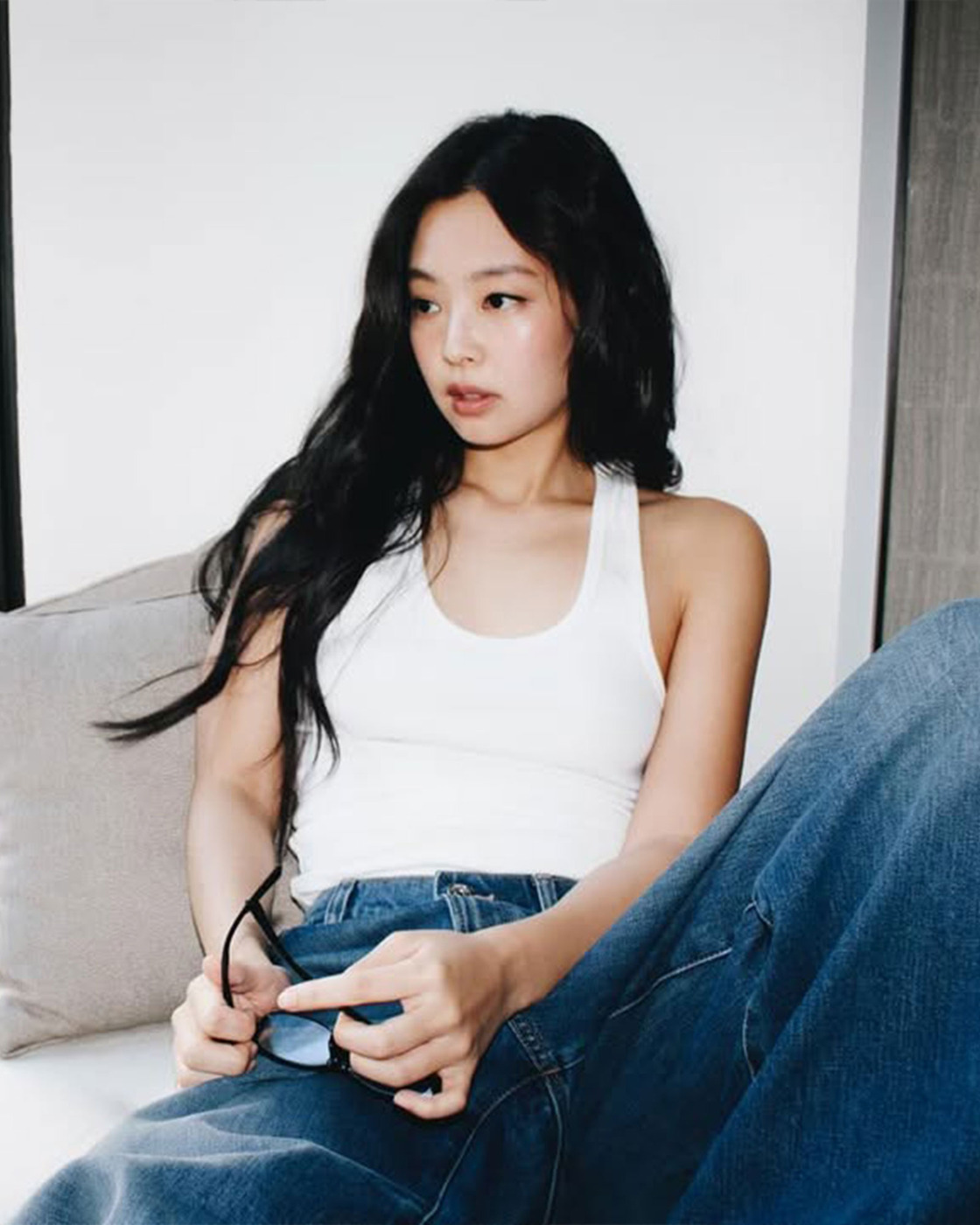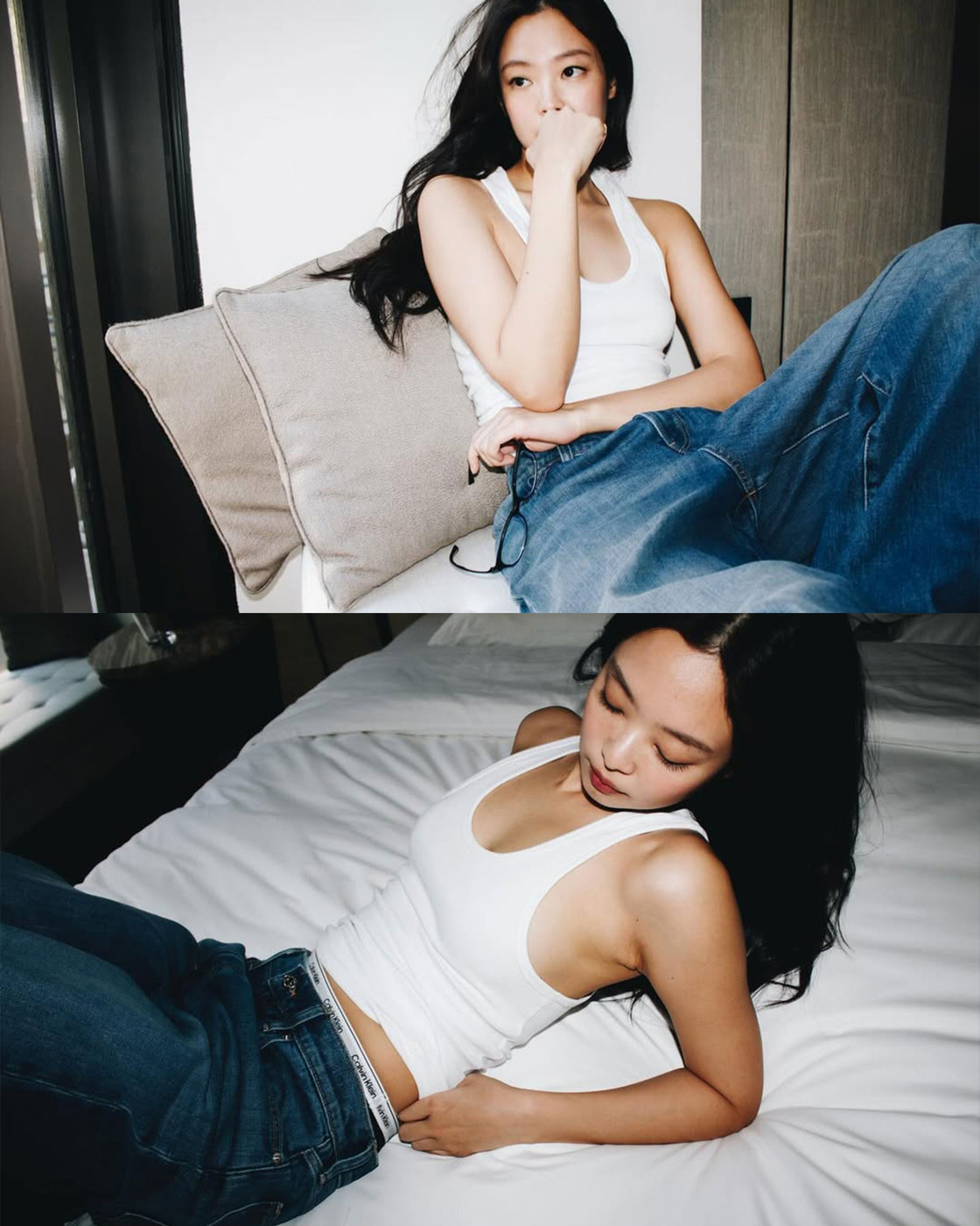 베로니카 레오니의 2026 가을, 겨울 캘빈 클라인 쇼 참석차 뉴욕에 도착한 제니! 스케줄이 끝난 뒤에는 느좋의 정석, 화이트 탱크 톱에 청바지를 입었습니다. 여기에 뿔테 안경과 캘빈 클라인 로고가 돋보이는 언더웨어까지, 전부 젠민수 할게요..