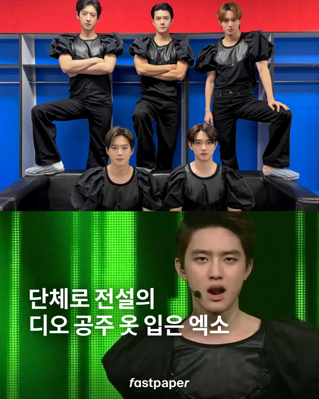 엑소가 왜 이리 무리해.. 엑소가 전설의 도경수 공주 옷을 입고 나타났습니다. 1위 공약으로 내건 전원 단체 공주 옷 약속을 지킨 것인데요. 에리들을 위해서라면 무엇이든 하는 이 남자들.. 13년 전 추억의 이 옷까지 말아주었습니다. 위아원 처해야하는 이유
