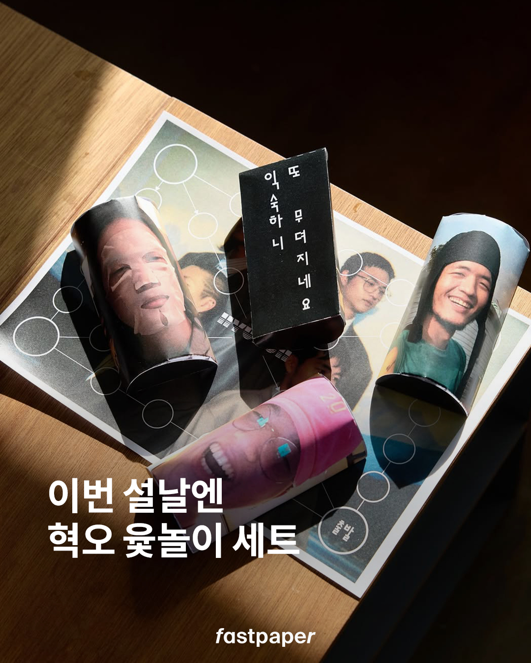 두루두루 컴퍼니가 준비한 설 선물! 혁오 윷놀이 키트 보고 가세요. 혁오 멤버들의 얼굴이 새겨진 윷과 윷판을 만나볼 수 있는 기회. 두루두루 컴퍼니의 인스타그램(@dooroodooroo.ac) 프로필 링크에 올라온 혁오 윷놀이 키트를 다운로드한 후, 도안을 출력해 오리고 붙여 DIY로 혁오 윷을 만들면 끝.
