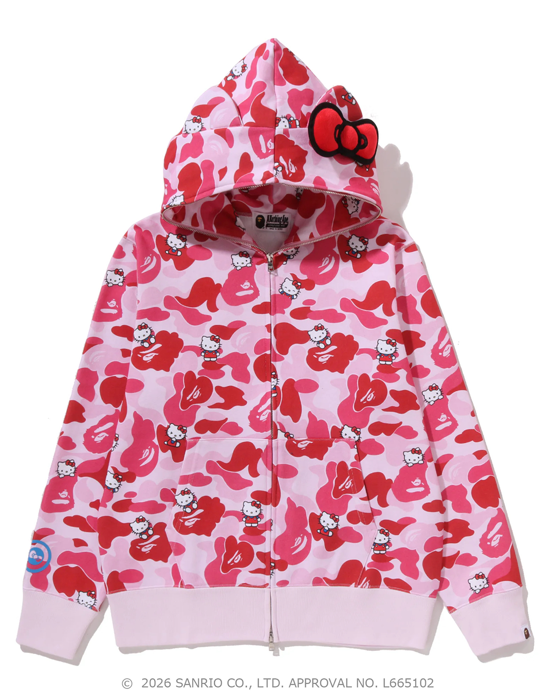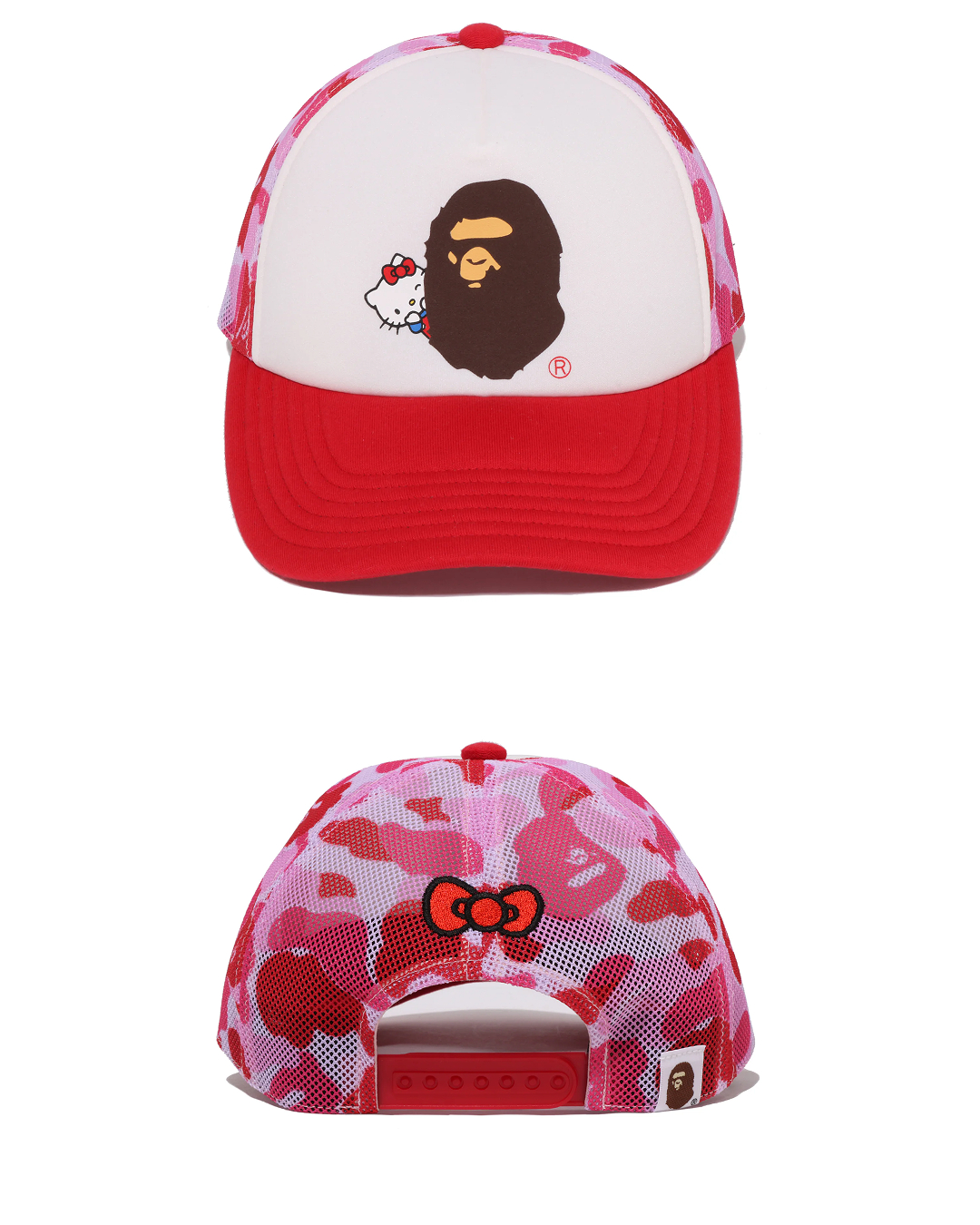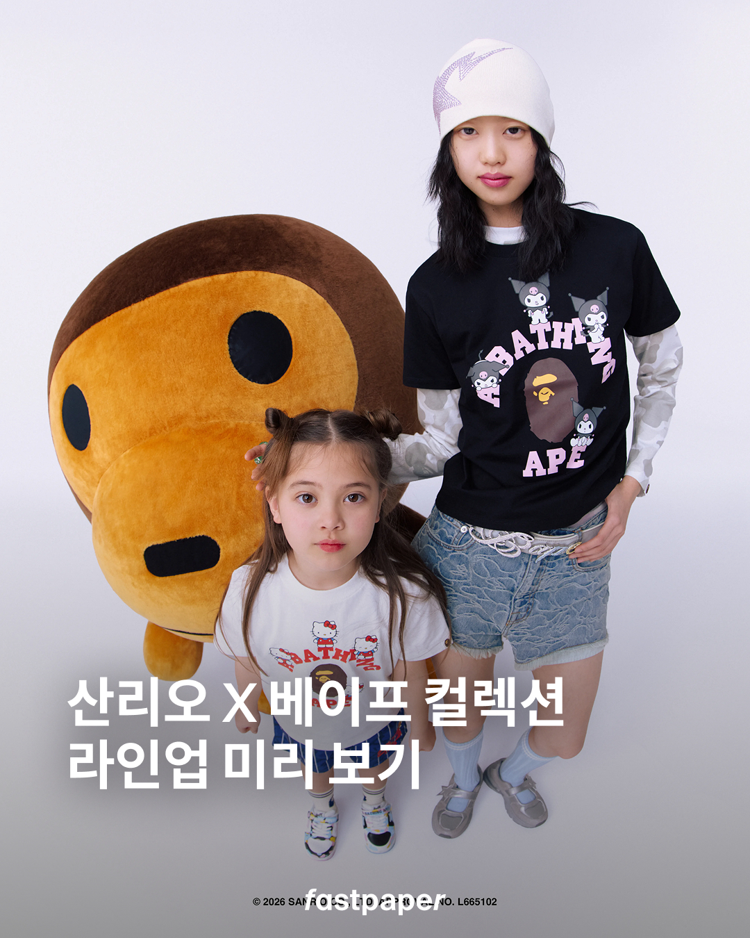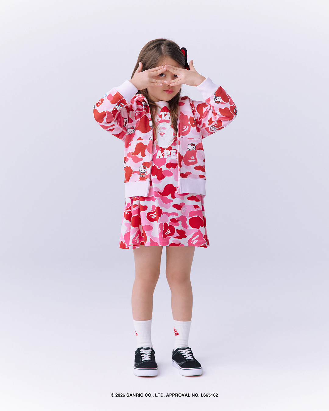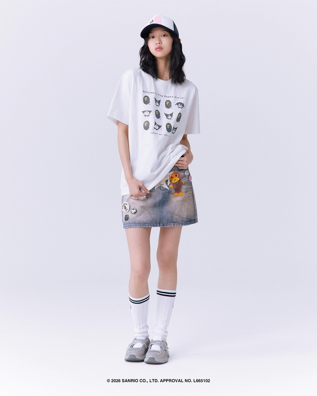 특히 산리오 캐릭터들이 ‘숨바꼭질’하는 콘셉트로 제작된 오리지널 카모 패턴을 새롭게 선보입니다. 라인업은 그래픽 티셔츠, 캐릭터 카모 풀집 후디, 메쉬 캡, 인형 및 키링 등으로 구성되어 있죠. 이번 콜라보는 오는 28일부터 베이프 공식 사이트 및 매장에서 구매 가능합니다.