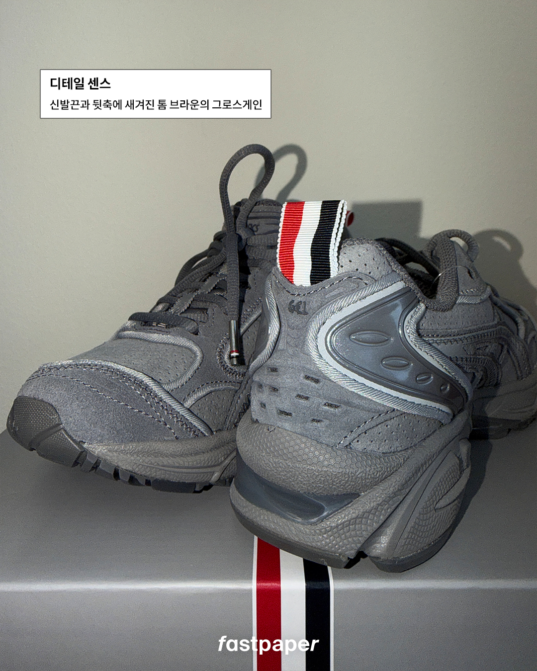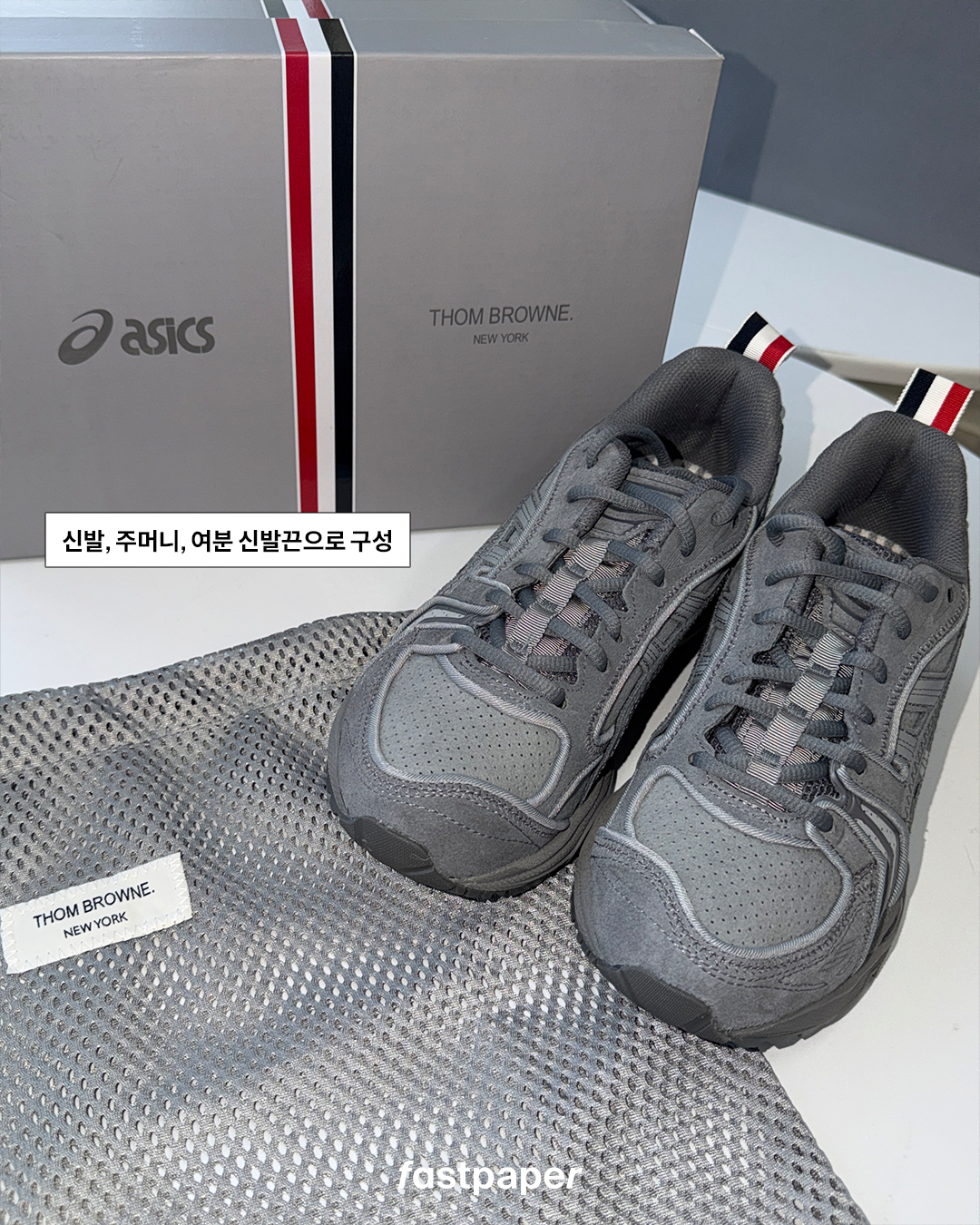 지난 2월, 톰 브라운 2026 가을 런웨이 쇼에서 공개된 톰 브라운과 아식스 스포츠스타일의 첫 번째 콜라보레이션! 한정판 아식스 젤-카야노™ 14 그레이 컬러의 구성품부터 디테일까지, 패페가 담은 자세한 후기는 피드를 넘겨 확인해 보세요.