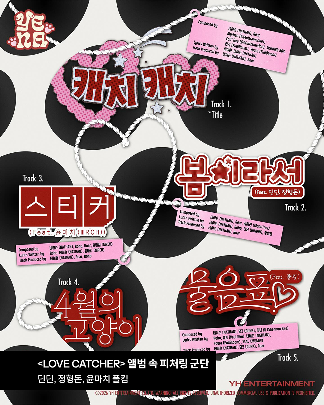 어제 패페에서 스포 했던 예나의 피처링 군단이 오늘 공개되었죠. 지구미들이 예상한 대로 딘딘과 정형돈, 윤마치와 폴킴까지 다양한 지원군들이 이번 앨범에 함께하게 되었다고 하는데요.