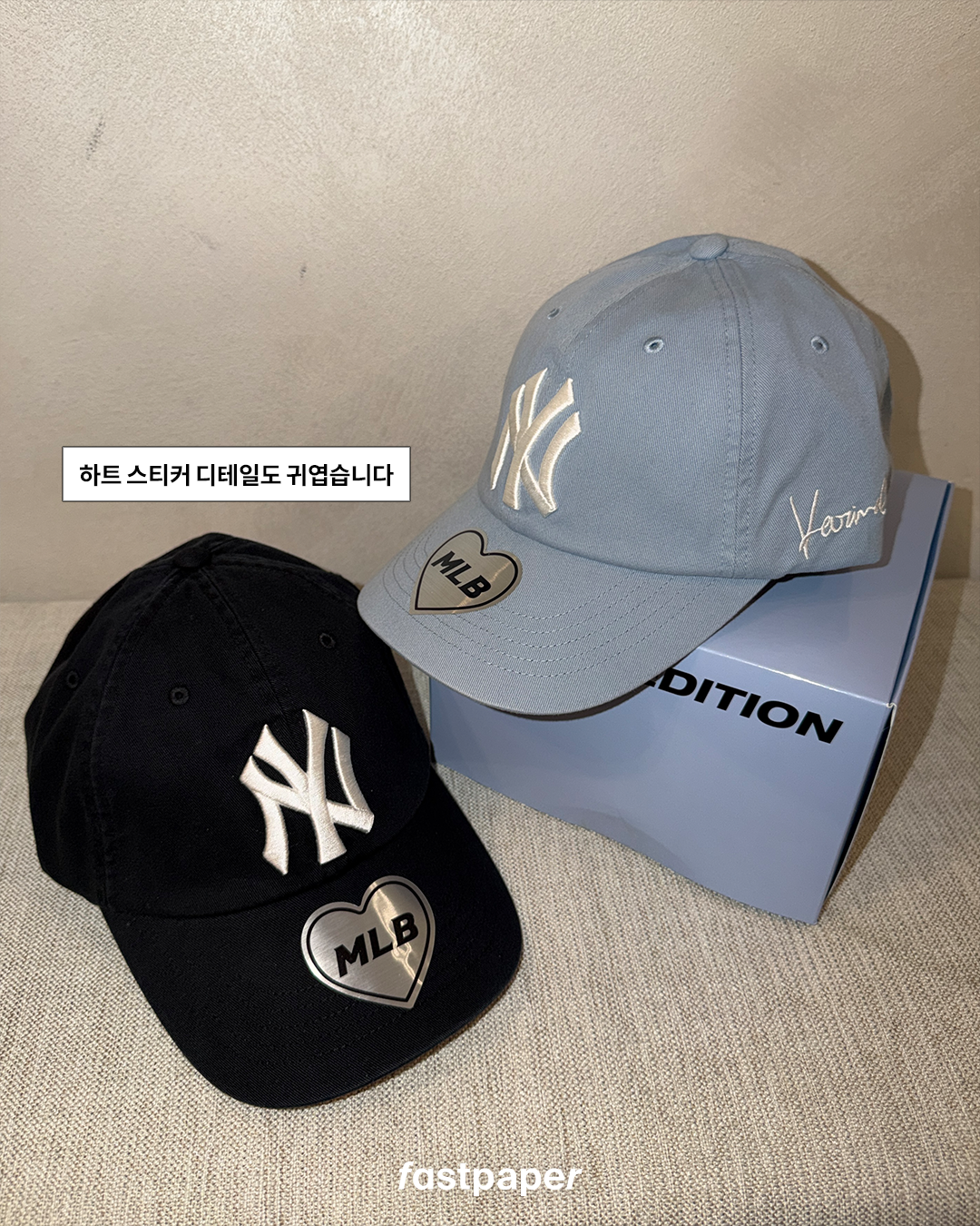 이번 MLB 카리나 에디션은 볼캡 2종, 후디, 반팔 티셔츠까지! 총 4가지 아이템으로 구성되어 있었는데요. 3월 4일 수요일 오후 12시 MLB 공식 온라인몰 및 무신사에서 한정수량 발매 예정이라고 해요. 다들 칼민수 할 준비됐니?