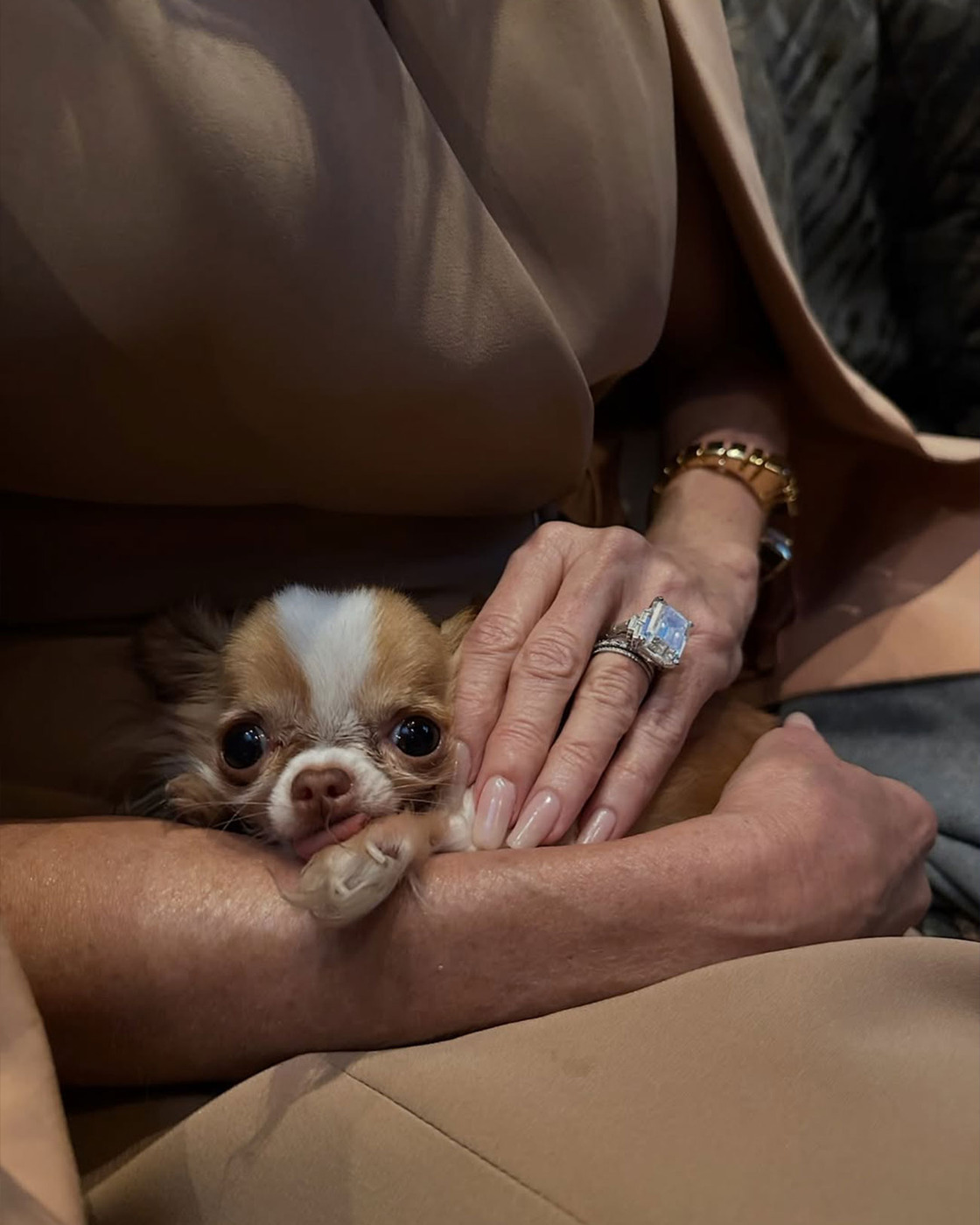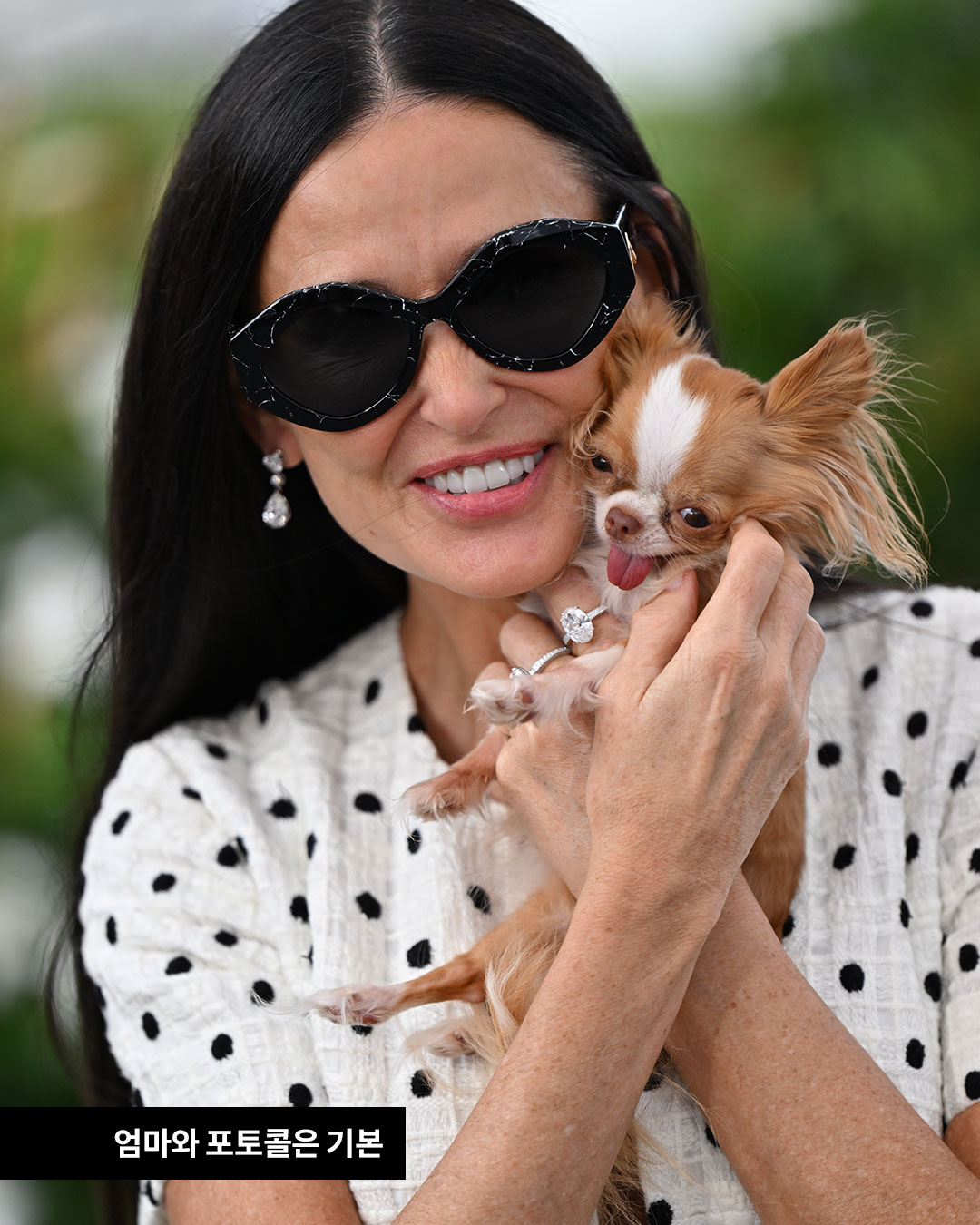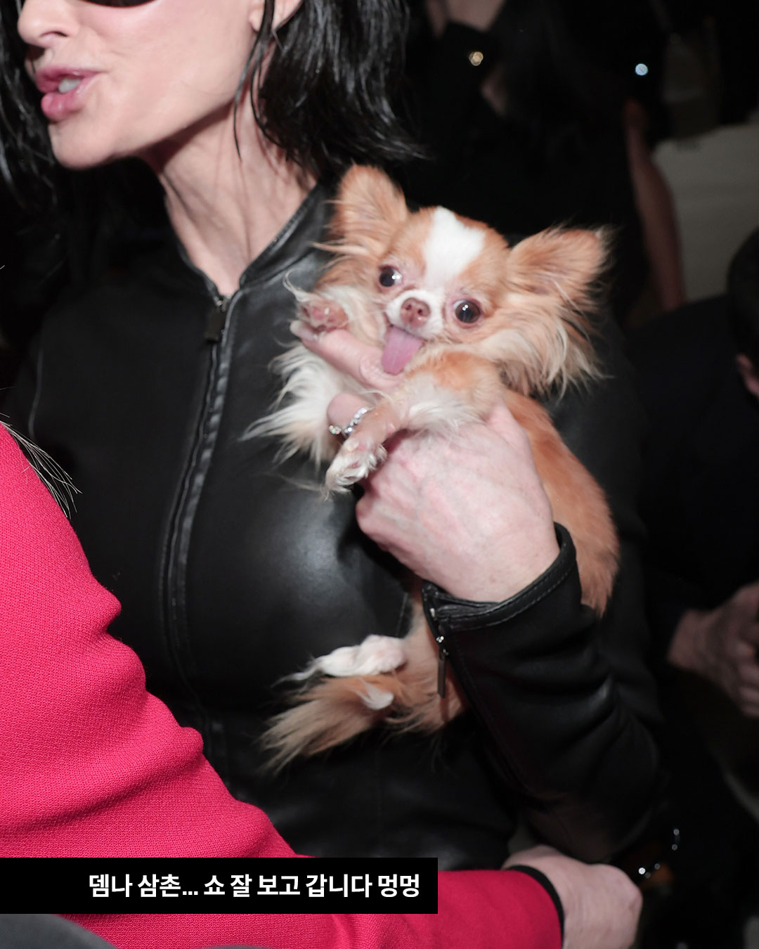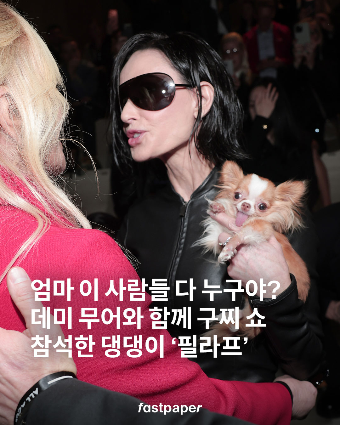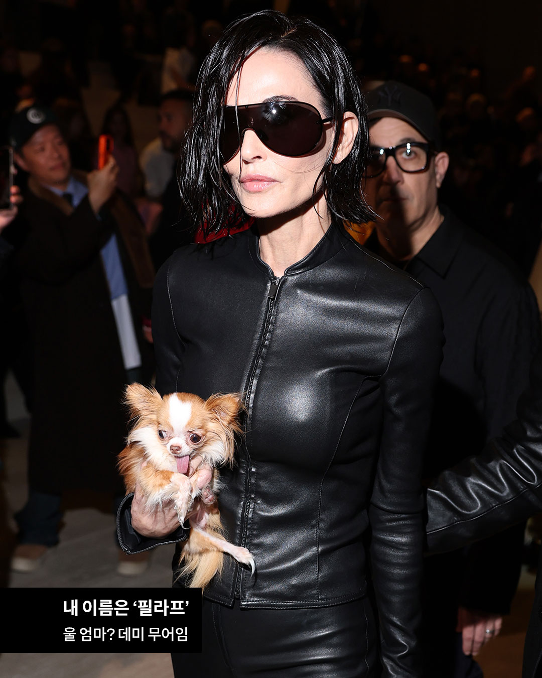 뎀나의 첫 구찌 런웨이를 찾은 뜻밖의 게스트! 데미 무어 품에 꼭 안긴 치와와 ‘필라프’입니다.