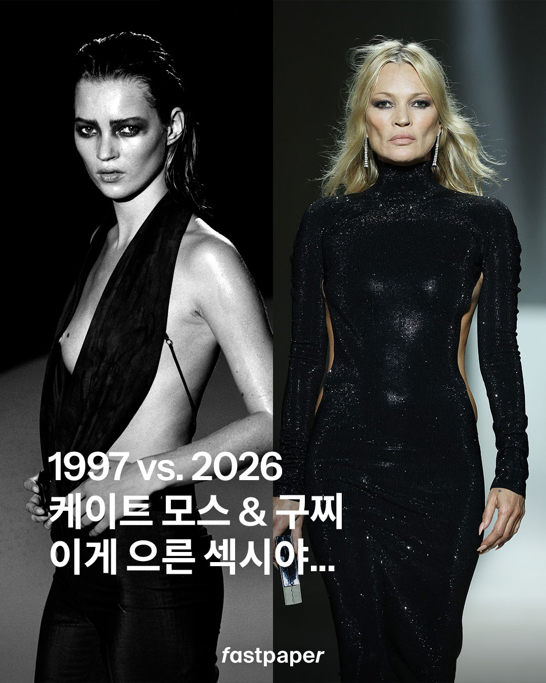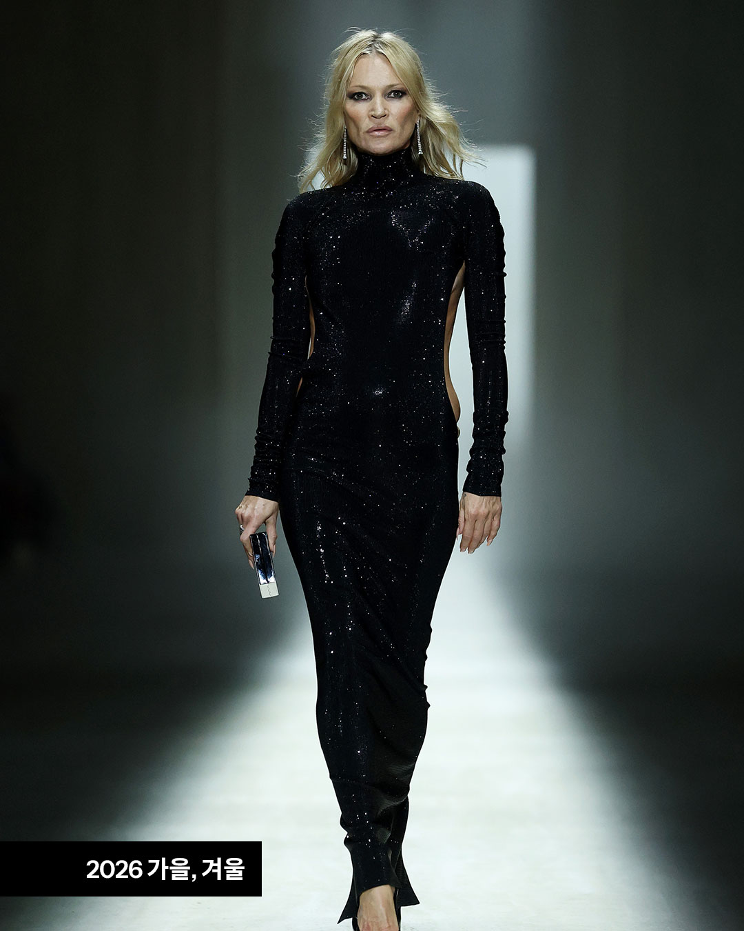 넷스펜드부터 칼리 클로스까지, 떠오르는 뮤지션들과 00년대를 상징하는 슈퍼모델들이 대거 등장해 보는 재미를 더했는데요. 그 화려한 데뷔 무대의 피날레를 장식한 인물은 역시 케이트 모스였습니다. 톰 포드 시절 구찌를 떠올릴 때 빠지지 않는 얼굴인 그녀는, 90년대 대중에게 충격을 안겼던 포드의 ‘G 스트링’을 재해석한 블랙 드레스를 입고 런웨이에 올랐죠.
