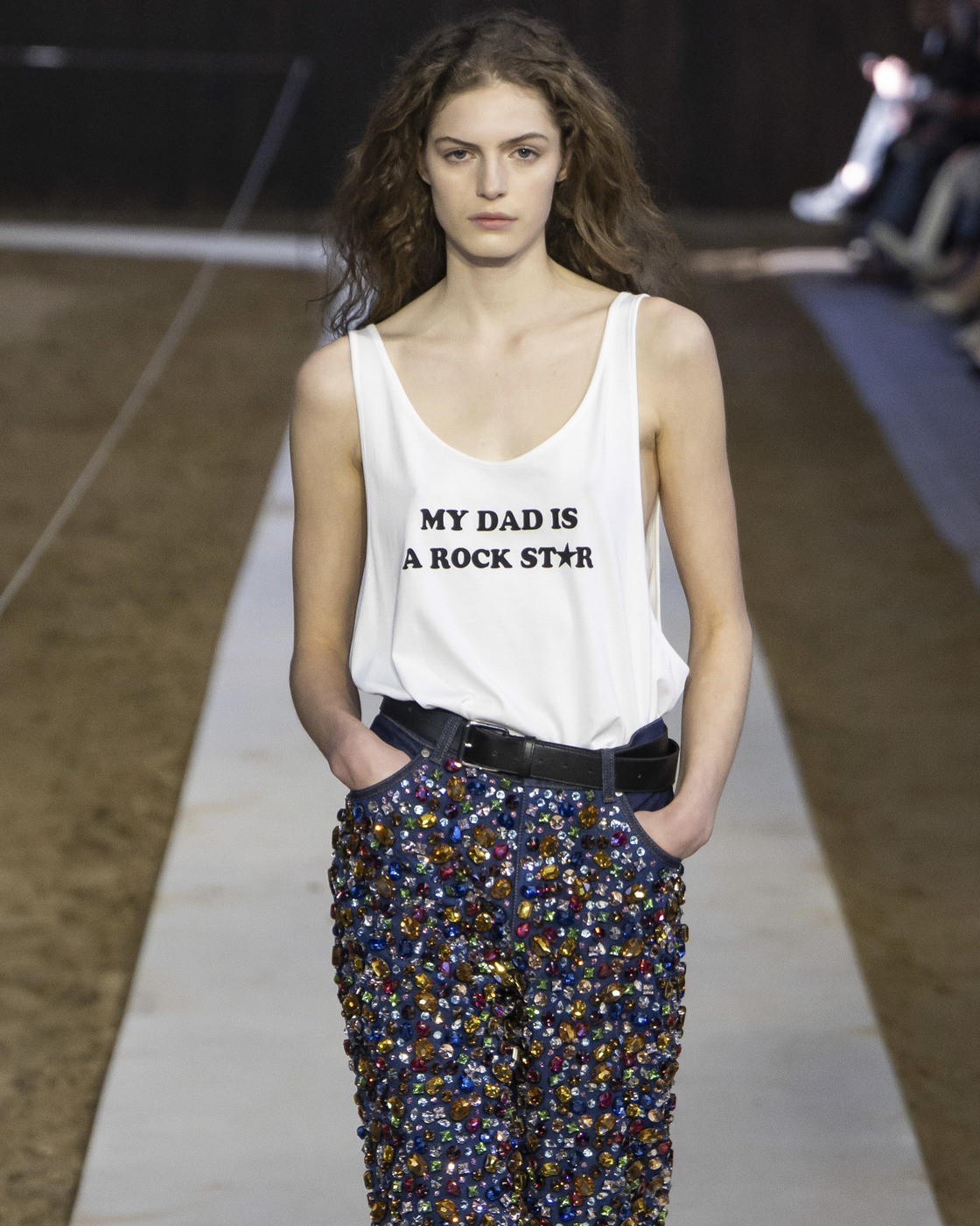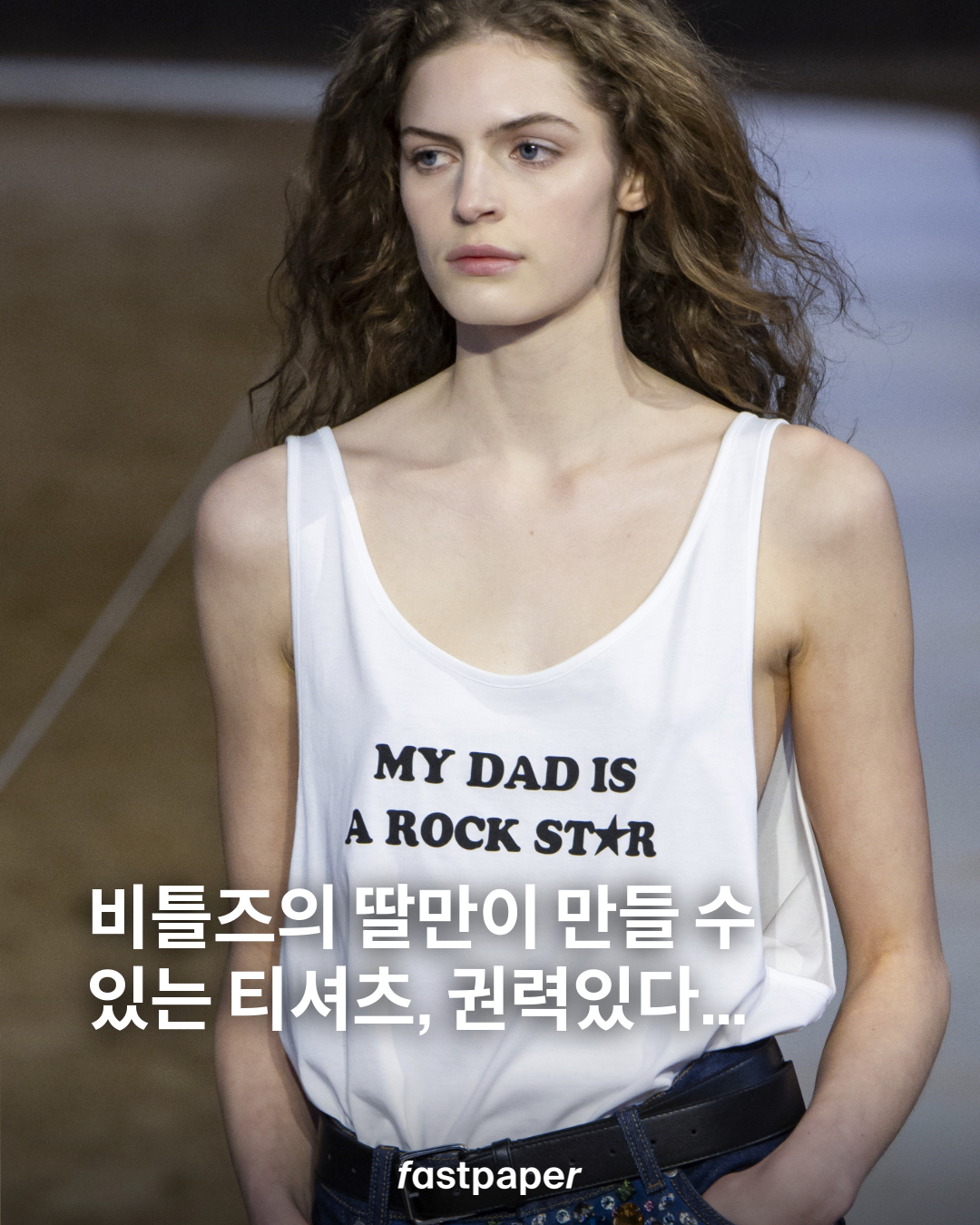 스텔라 매카트니 2026 가을, 겨울 쇼에 등장한 이 티셔츠. ‘MY DAD IS A ROCK STAR’라는 문구가 눈에 들어옵니다. 크게 특별하게 느껴지지 않을 수 있는 레터링 티셔츠이지만, 스텔라 매카트니의 룩이라는 것을 알면 권력 넘치는 티셔츠로 느껴질 수 밖에…!