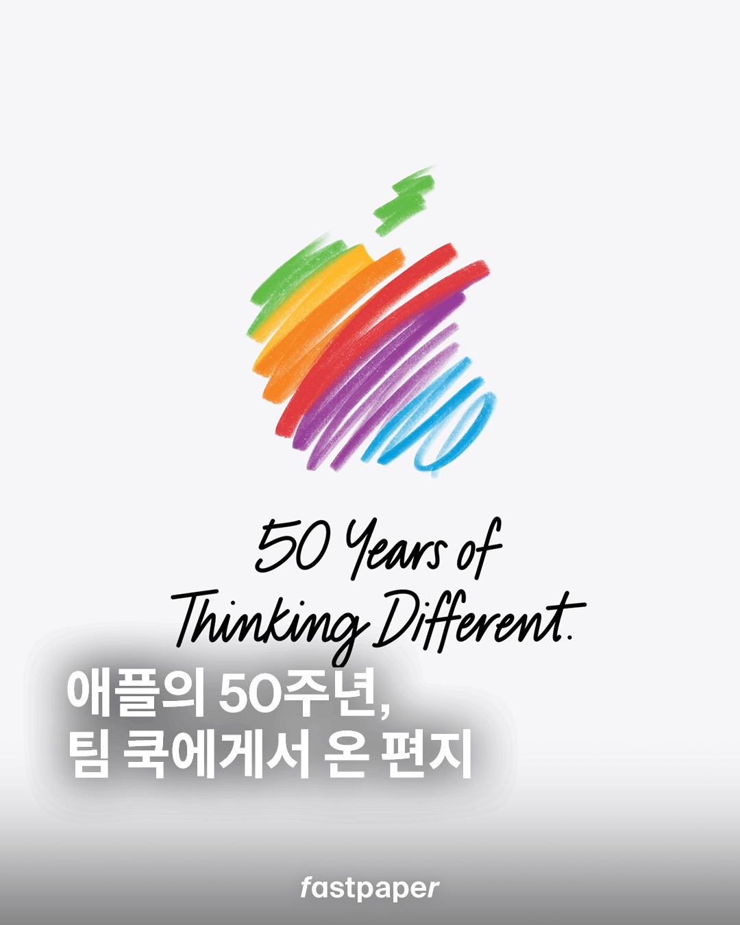 애플의 창립 50주년을 맞아 최고 경영자 팀 쿡이 헌사의 메시지를 담은 편지를 공개했습니다. 편지의 말미에는 애플의 상징적인 ‘Think Different’ 캠페인 문구가 녹아있네요.