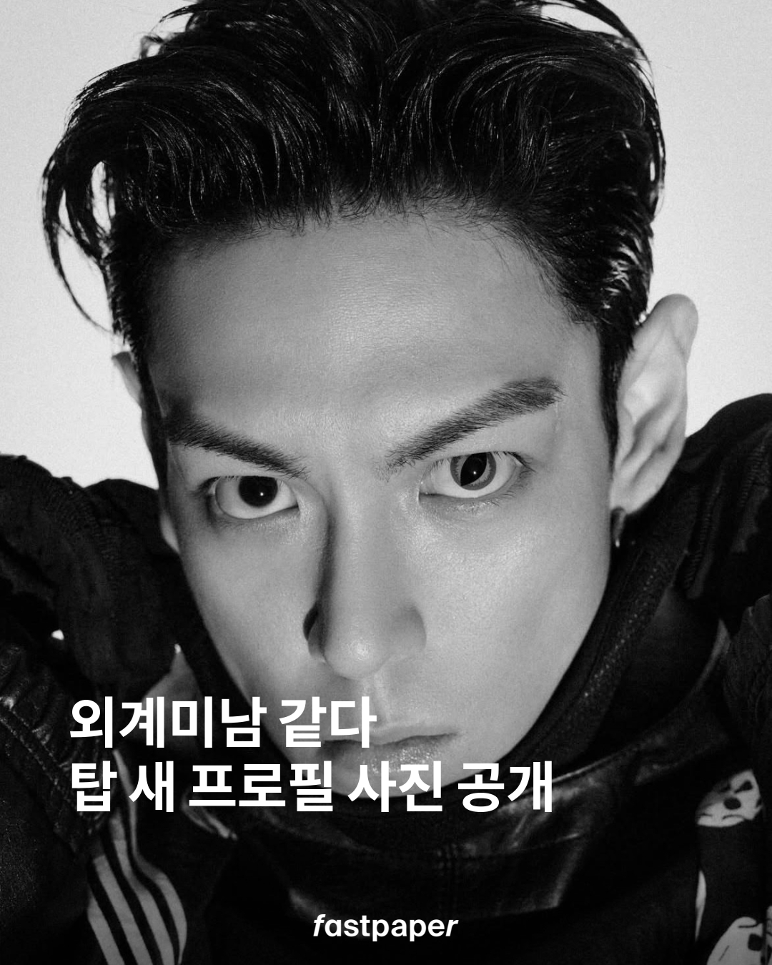 솔로 앨범 공개를 앞둔 탑이 새 프로필 사진을 공개했습니다. 예전 MAMA 무대가 떠오르는 렌즈를 착용한 점이 인상적이네요. 살짝 보이는 스카프는 알렉산더 맥퀸 제품일까요?