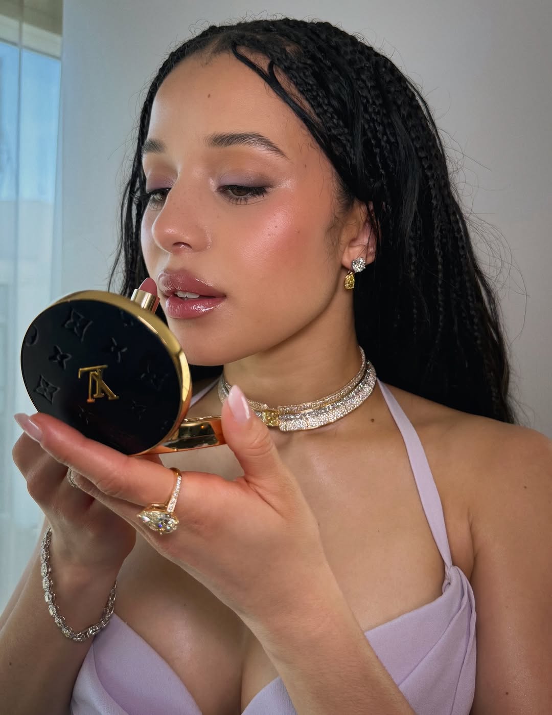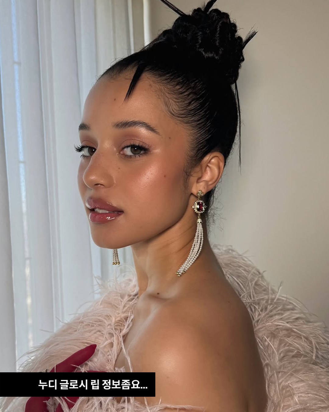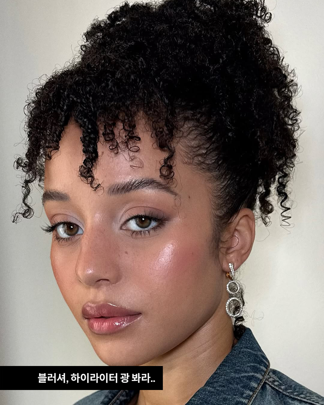 메이크업 아티스트 엠버 D(@amberdmakeup)의 손끝에서 탄생한 메이크업 또한 루이 비통의 뷰티 아이템들을 사용했는데요. 매트하게 바른 연보라 섀도 위로, 눈 앞머리와 끝 쪽에 영롱한 화이트 하이라이트를 더해 신비로운 느낌을 연출했어요.