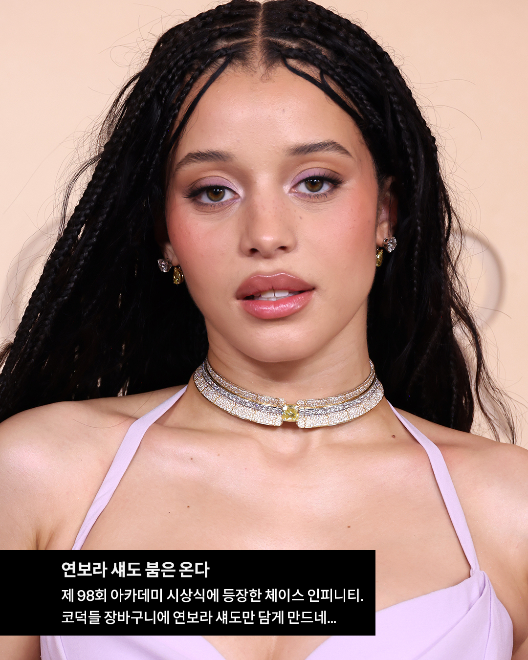 제 98회 아카데미 시상식에 참석한 체이스 인피니티. 그는 싱그러운 연보랏빛의 커스텀 루이 비통 드레스를 입고 등장했는데요. 드레스와 완벽히 깔맞춤한 연보라 메이크업도 화제입니다.