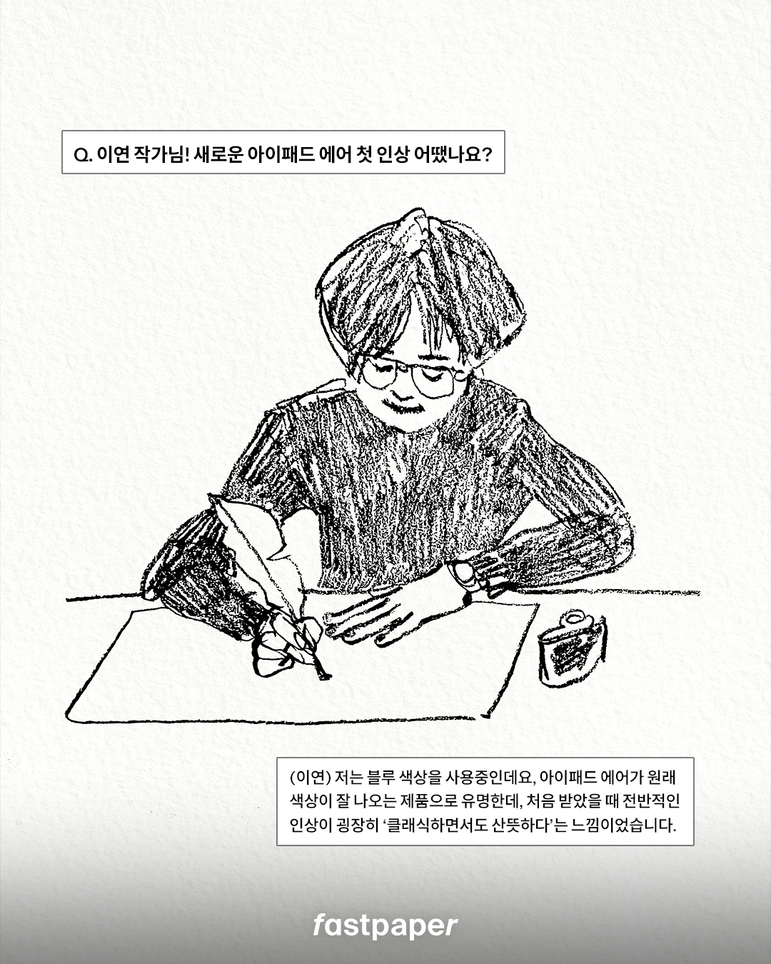 (이연) 저는 2019년부터 아이패드를 계속 사용해왔고, 처음에는 아이패드 프로로 입문했어요. 그때는 프로의 성능이 인상적이었는데, 이번에 에어를 사용하면서 ‘에어로도 충분히 창작 작업이 가능하겠다’는 생각이 들었습니다. 그만큼 에어 제품의 성능이 많이 좋아졌다는 느낌을 받았어요.