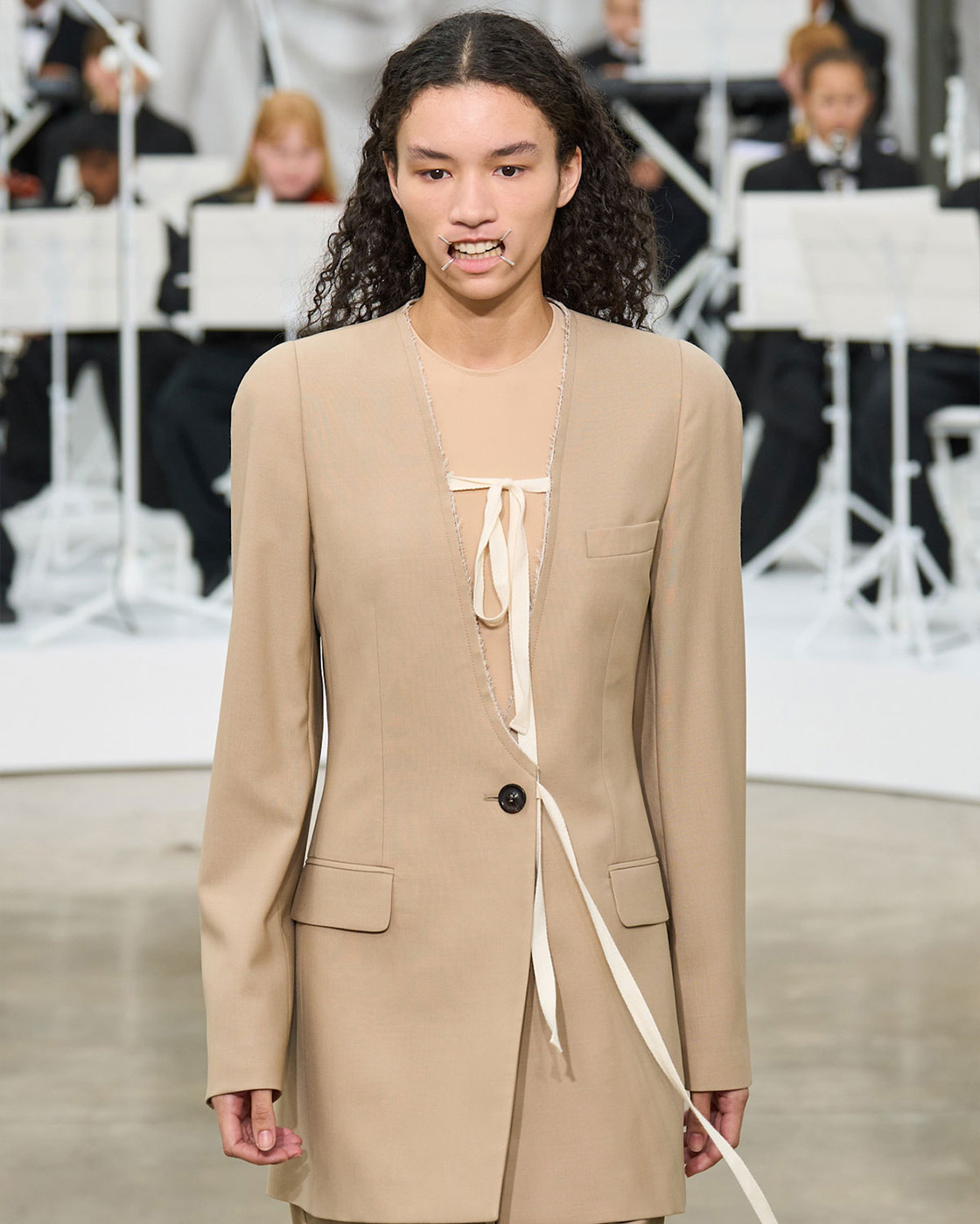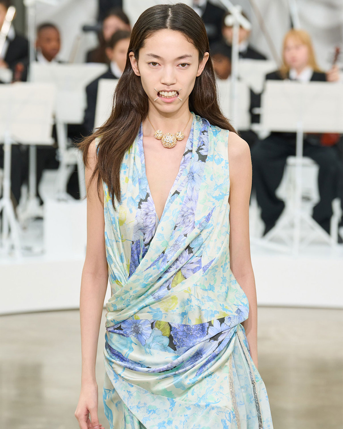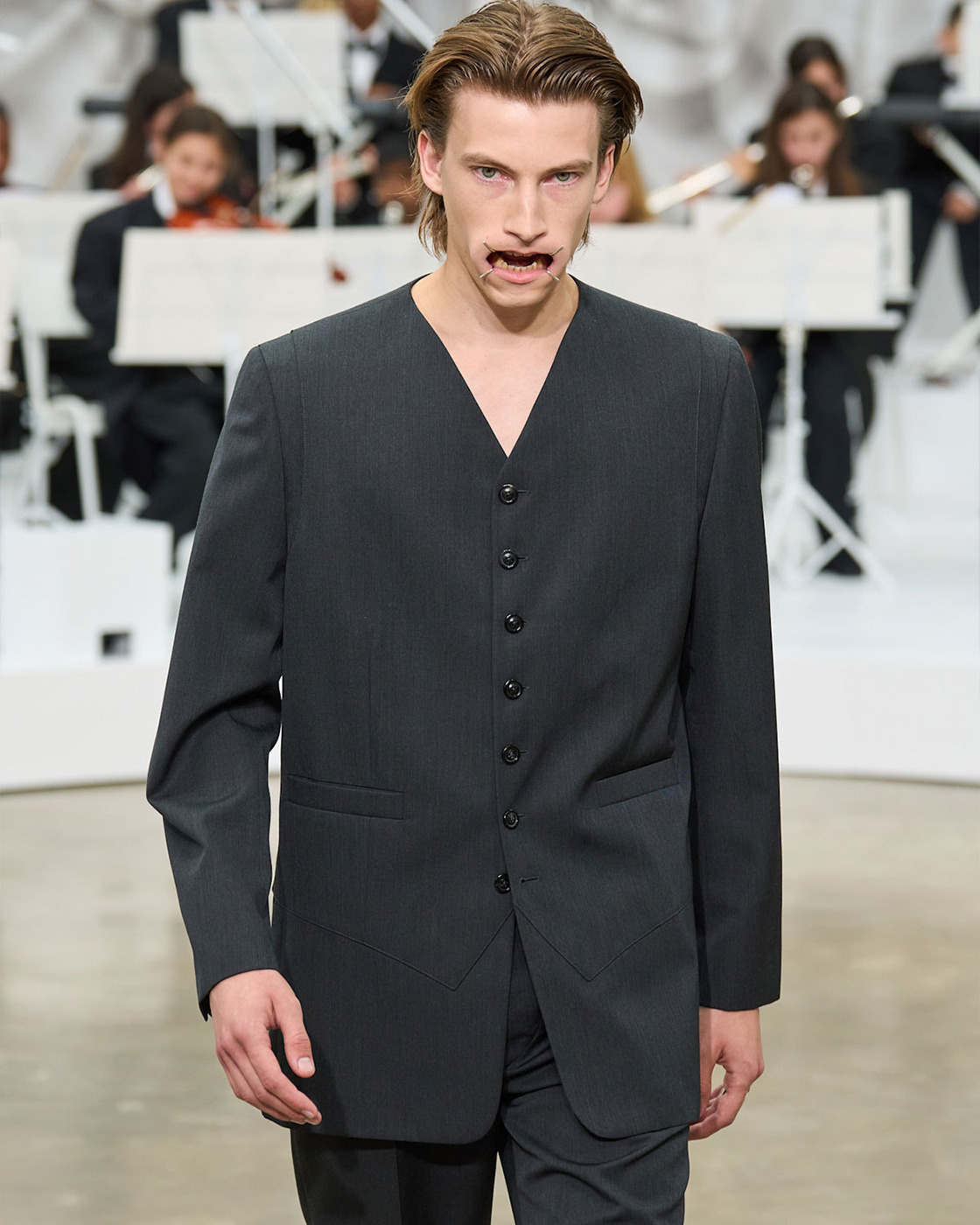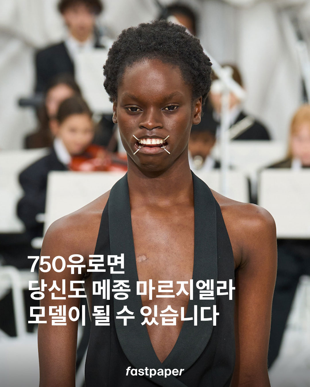 지난 가을, 파리 패션위크에서 공개된 글렌 마틴스의 2026 봄, 여름 메종 마르지엘라 컬렉션 기억하시나요? 어린이 오케스트라의 라이브 연주와 함께 개구기를 착용한 모델들이 등장하며 화제를 모았죠.