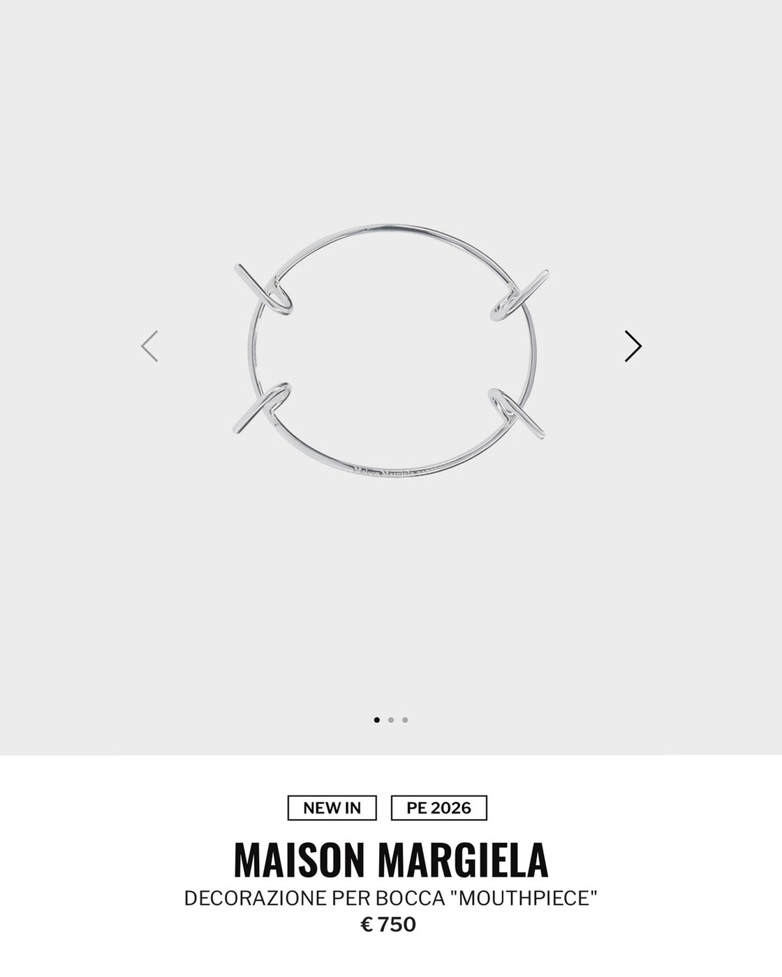 당시 런웨이에서 모델들이 착용했던 개구기가 봄 시즌 주얼리 제품으로 실제로 출시됐습니다. 현재 부티크 슈가 웹사이트에서 750유로, 한화 약 129만 원 정도에 판매 중입니다. 마르지엘라 모델들처럼 이를 시원하게 자랑할 패페 친구 구합니다..