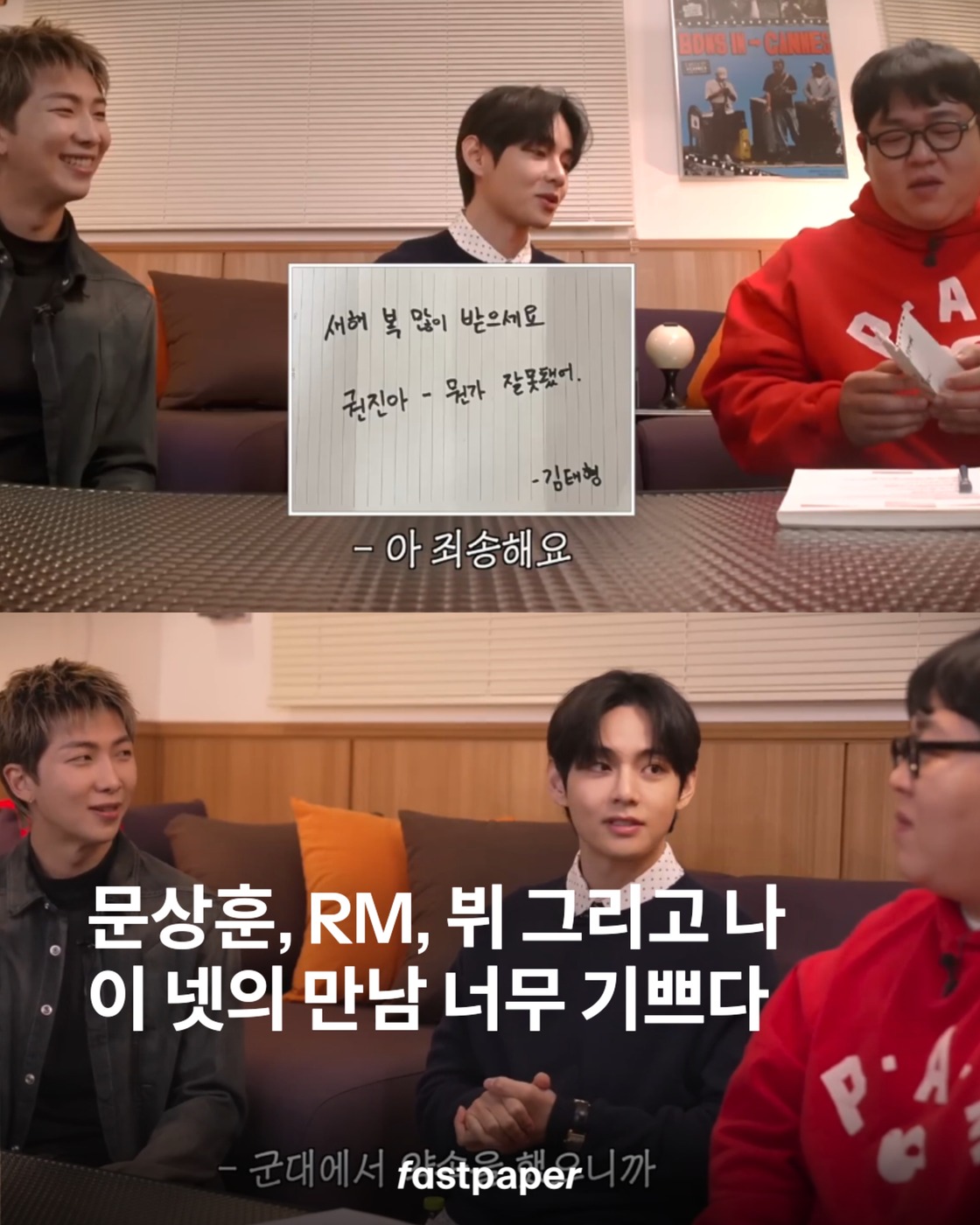 문상훈의 빠더너스 ‘오당기’ 코너에 BTS RM과 뷔가 출연합니다. 최근 이 둘이 빠더너스 굿즈 후디를 착용한 것이 목격돼 팬들은 이미 출연을 예상하고 있었는데요. 뷔가 군 복무 시절 문상훈에게 출연을 약속한 사실도 티저를 통해 밝혀졌죠. 풀버전은 내일 오후 1시 공개 예정! 이 넷의 만남에 나 그냥 상규짱 되는 거야…