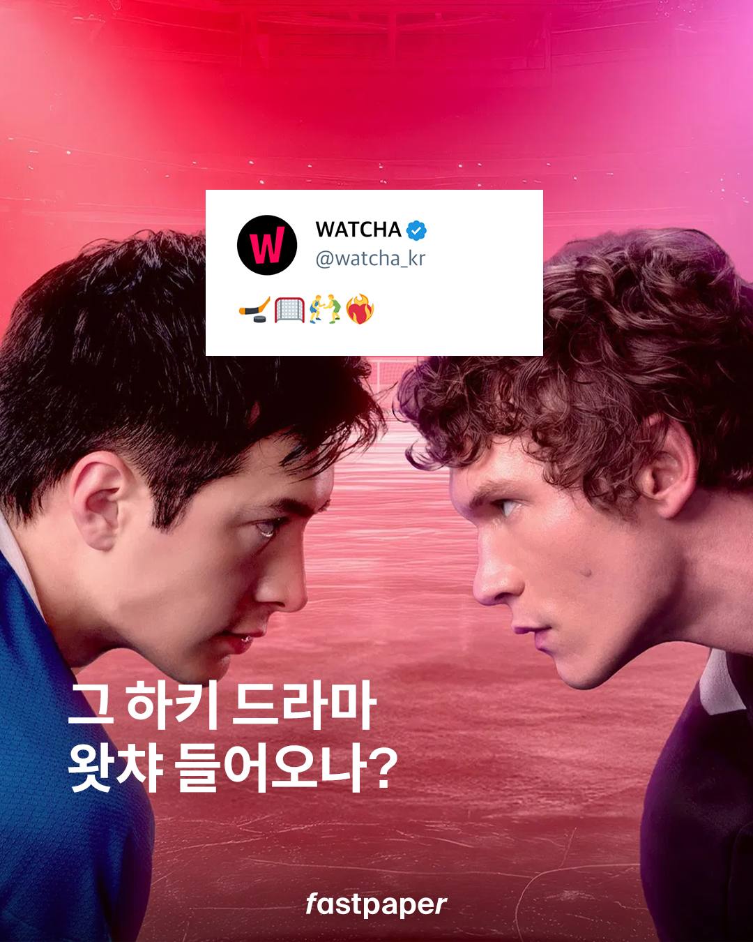 전세계를 아이스하키 열풍에 몰아넣은 드라마 <히티드 라이벌리>가 왓챠에 들어오는 걸까요? 왓챠가 네 개의 이모지를 적은 게시글을 하나 올렸습니다.