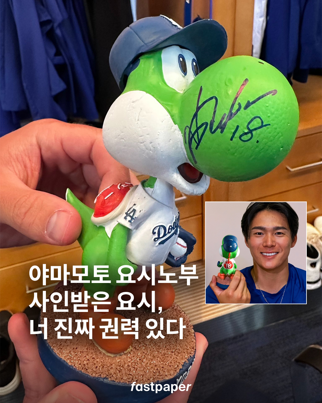 여기에 MLB 기자의 말을 빌리자면, 다저스 몇몇 선수들은 이날 요시 피규어에 야마모토 요시노부의 사인까지 받아 갔다고 하죠. 이건 모두 다저스에 ‘요시’가 있어서 가능한, 덕분에 요시 유니버스가 완성된 순간이네요.