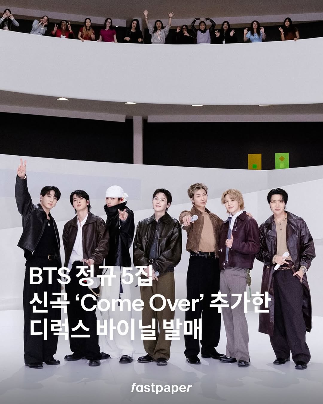 BTS가 깜짝 디럭스 바이닐을 발매합니다. 이번 음반에는 기존 수록곡 14곡에 신곡 ‘Come Over’를 추가해 특별함을 더했는데요.