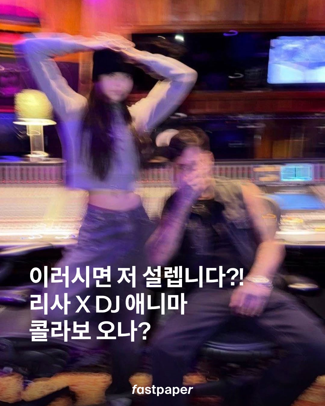 블랙핑크 리사가 인스타그램 스토리에 블링크들 설레게 하는 사진을 공유했습니다. 스튜디오에서 작업 중인 그녀 옆엔 DJ 애니마가 앉아 있는데요. 콜라보 기대해도 되는 걸까요..?!