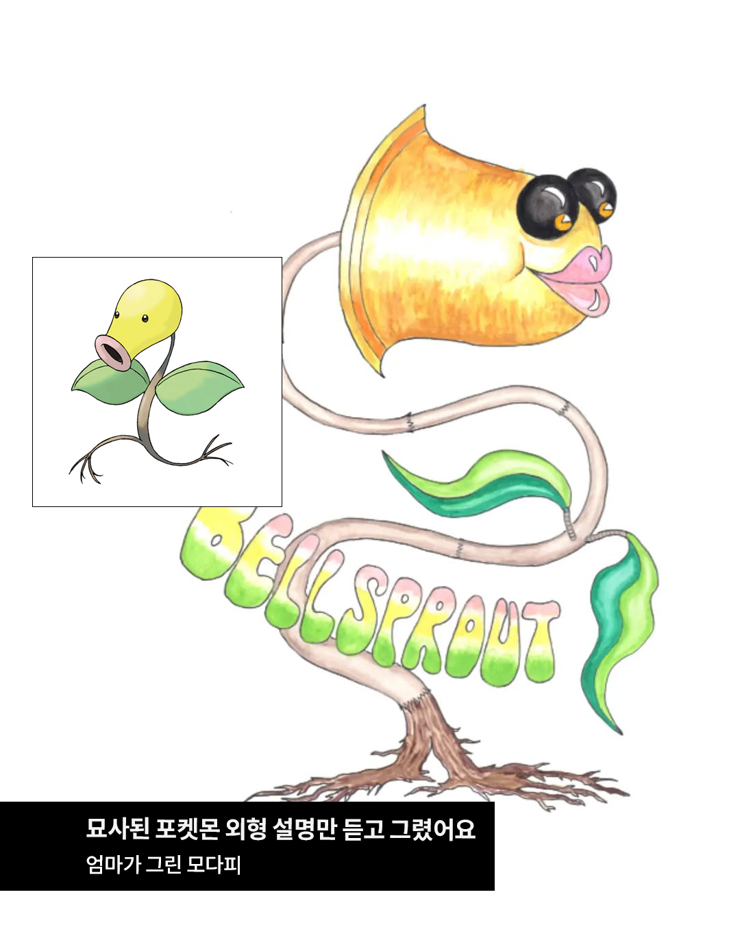 (@pok.emum)의 어머니는 포켓몬이 어떻게 생겼는지 모릅니다. 그저 포켓몬을 묘사하는 설명글만 보고 자유롭게 포켓몬을 그려내죠. 오직’ Bulbapedia’에 올라온 설명만 보고 실제 포켓몬들과 유사한 형태의 그림을 완성한다는 것이 놀라울 따름. 특히 모다피나 토게피는 높은 싱크로율을 자랑합니다.