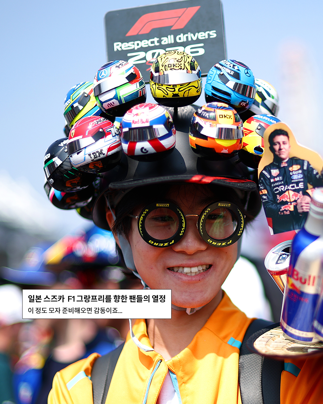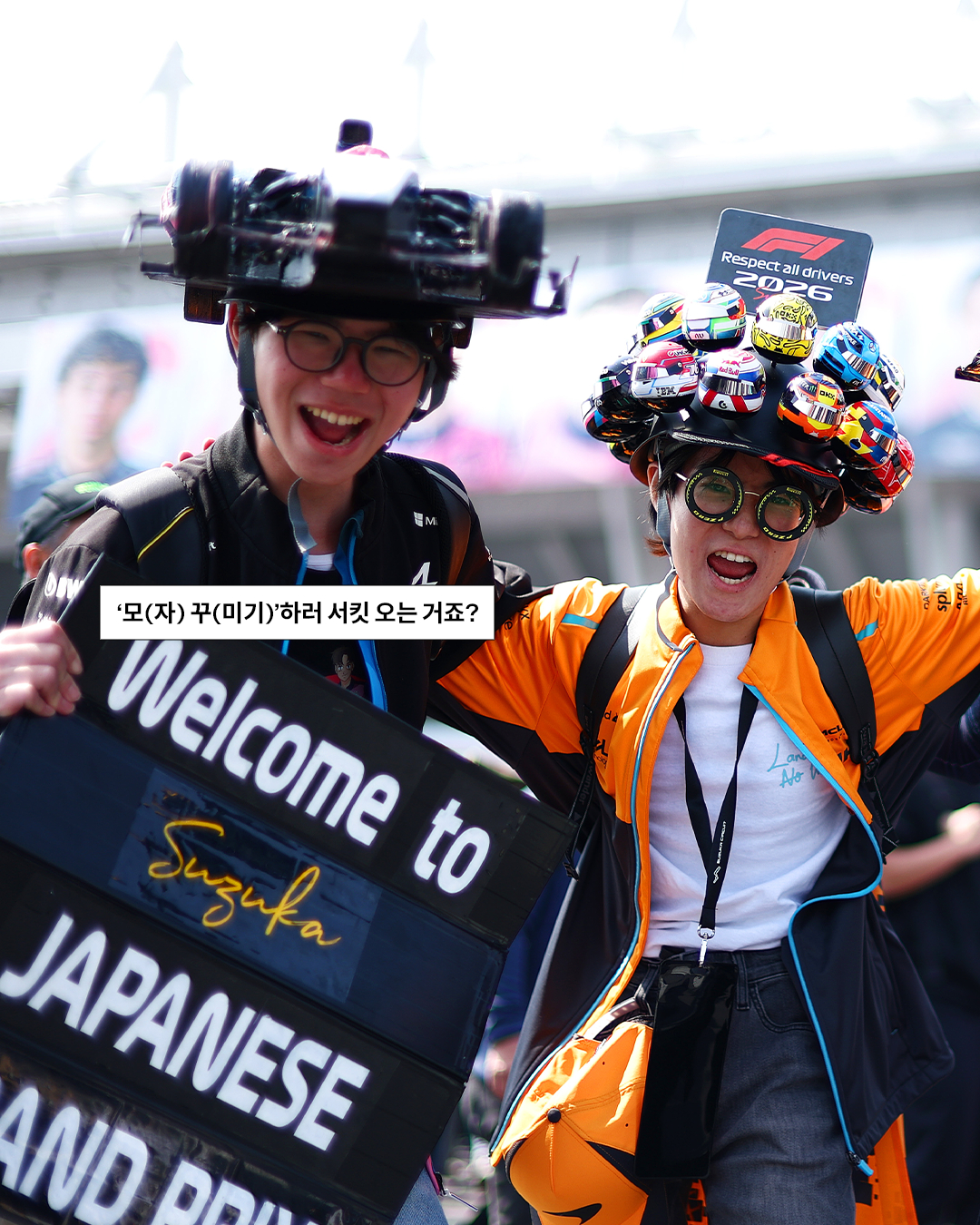 일본 스즈카 서킷에서 진행된 F1 일본 그랑프리 2026을 찾은 팬들의 열기는 남달랐습니다. 응원하는 팀을 위해 특별히 제작한 모자의 향연들로 가득했는데요. 미니어처 헬멧들을 모자에 매달거나, 모형 레이스 카를 머리에 위에 이고 지는 등 엄청난 손재주의 소유자들이 모였네요.