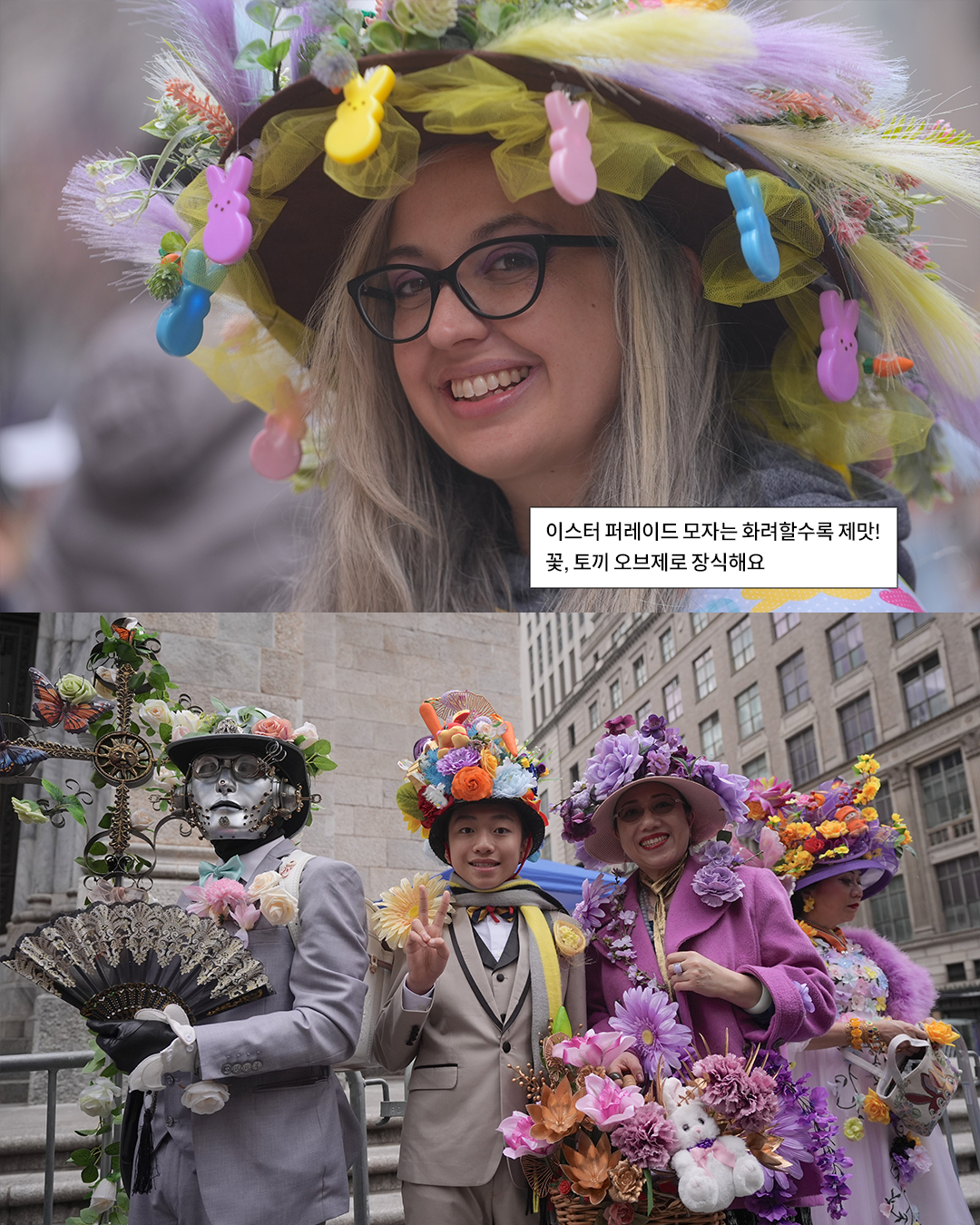 뉴욕 현지 시간으로 4월 5일, 부활절을 기념하는 연례 행사인 이스터 에그 퍼레이드 & 보닛 페스티벌이 세인트 패트릭 대성당 앞에서 열렸습니다. 매년 열리는 이 행사는 화려하게 장식한 모자와 코스튬을 입고 걷는 것이 특징인데요. 토끼, 꽃, 풍선 등 다양한 소재를 활용해 그 누구보다 특별한 룩을 선보이죠.