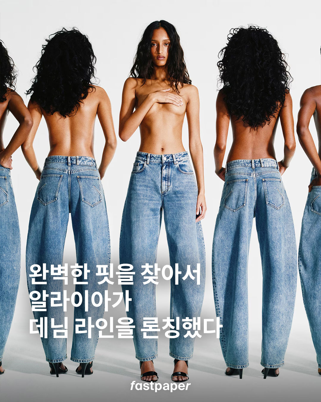 지난 3월 공개된 2026 가을, 겨울 쇼를 끝으로 피터 뮬리에와의 여정을 마무리한 알라이아가 브랜드 최초의 데님 라인을 공개했습니다. ‘완벽한 핏’을 목표로 1년간의 연구 끝에 완성된 컬렉션인데요.