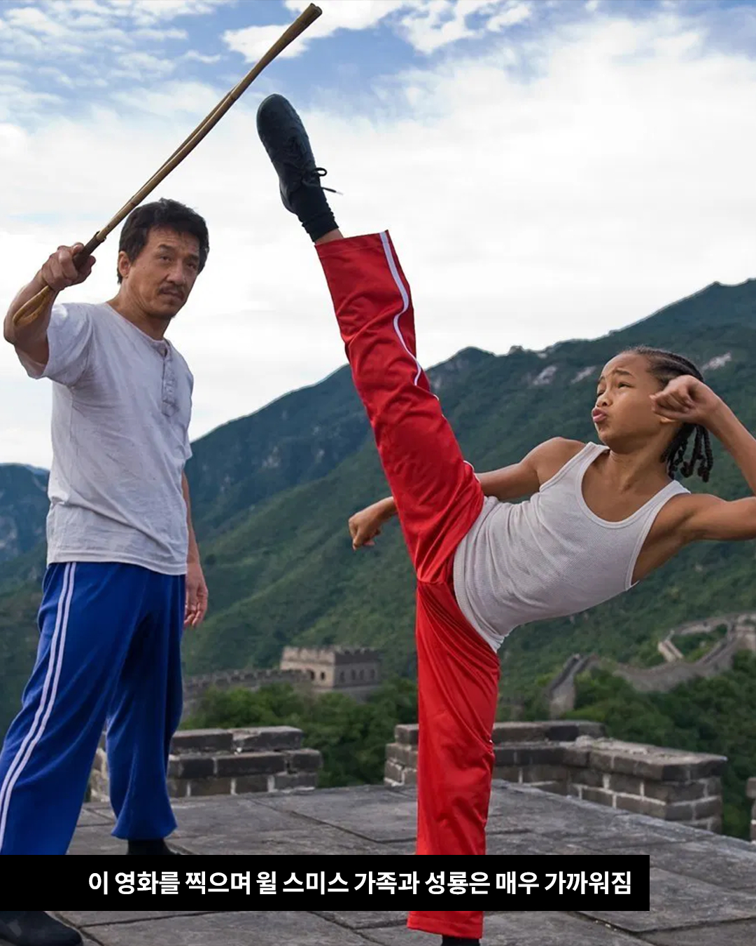 제이든은 영화 촬영을 위해 성룡의 무술 팀으로부터 직접 훈련을 받았고, 성룡은 제이든의 성실함을 높게 평가했습니다. 윌 스미스가 이 영화의 제작자였기 때문에 성룡과 윌 스미스 가족 전체가 매우 가까워졌죠.