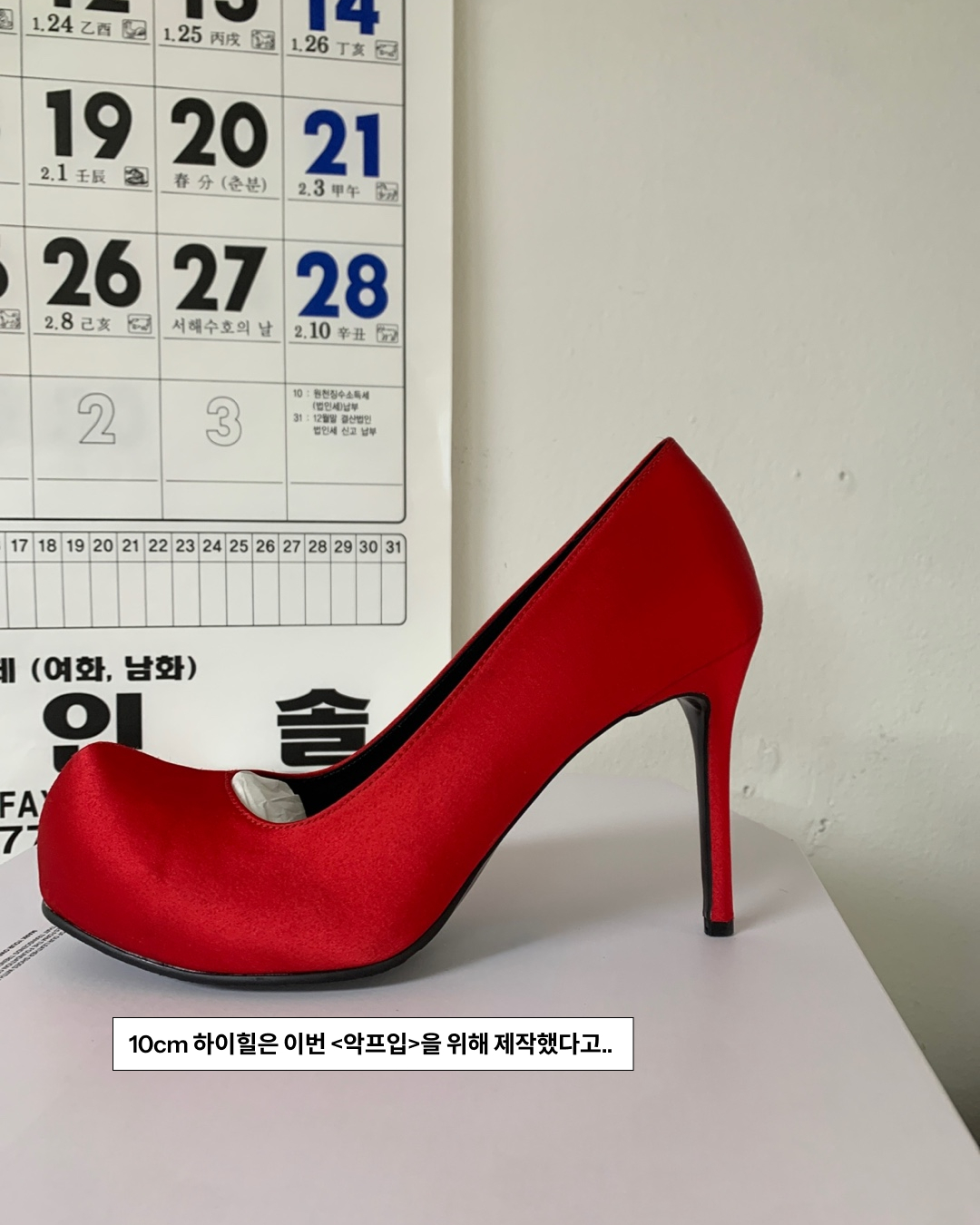 꽃신 하이힐을 제작한 브랜드는 김예지 디자이너의 리우앤비우(RIU&VIU). 브랜드는 이번 <악프입> 팀을 위해 7년 만에 10cm 하이힐을 처음 제작했다고 하죠. 상징적인 레드 힐을 구현하기 위해 한국 전통 여성 예복인 활옷과 주칠나전 등 붉은색이 강조된 전통 공예에서 모티프를 얻었다고 합니다.