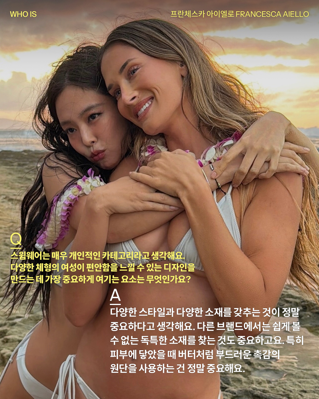 제니가 직접 디자인에 참여한 비키니 컬렉션, 프랭키스 비키니 협업이 드디어 발매됐습니다. 이번 협업을 기념해 말리부 기반의 브랜드 프랭키스 비키니는 국내 첫 팝업을 오픈했는데요. 엠프티 성수 현장을 찾은 프랭키스 비키니 설립자 프란체스카 아이엘로를 만났습니다.