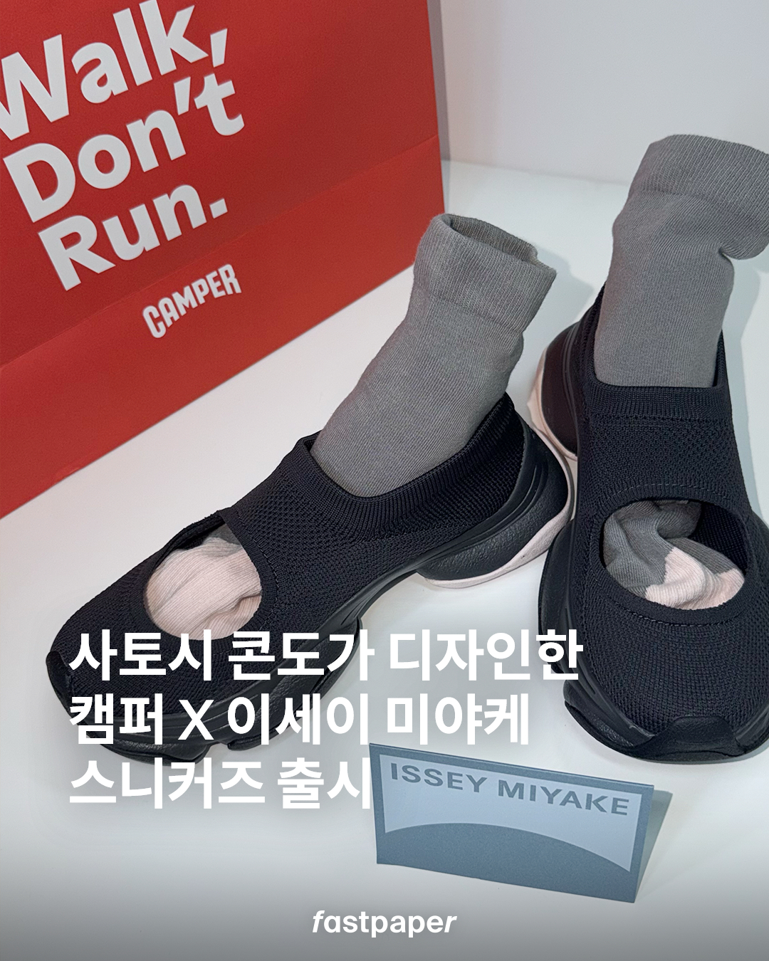이세이 미야케 여성복 라인의 디자이너 사토시 콘도가 디자인한 캠퍼 X 이세이 미야케 스니커즈 ‘Karst Finch(카스트 핀치)’가 출시되었습니다.