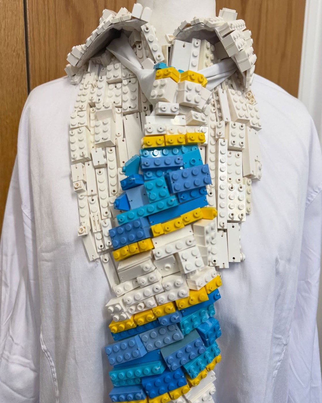 레고 블록을 하나하나 쌓아 올려 만든 재킷, 셔츠, 넥타이와 팬츠! 슈즈까지 레고로 뒤덮으며 풀 레고 룩이 완성되었습니다. 이 모든 걸 만드는 데 과연 몇 시간이 걸렸을까요…