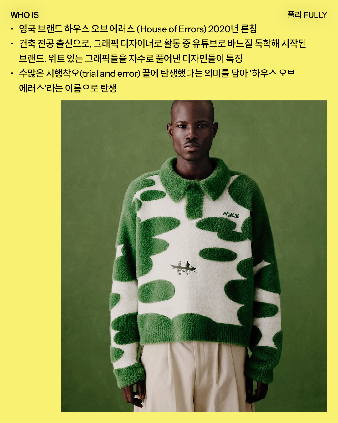 대학 시절 영국 맨체스터의 침실에서 작은 프로젝트로 시작된 하우스 오브 에러스는 위트 있는 그래픽을 정교한 자수로 풀어낸 피스들을 선보이며 사랑을 받고 있습니다. 영국에서 시작해 하우스 오브 에러스는 현재 타이베이, 도쿄에 이어 서울에서도 팝업을 운영 중. 타이베이와 도쿄를 거쳐 현재 서울에서도 팝업 스토어를 운영 중인 풀리의 진솔한 인터뷰는 위 슬라이드에서, 팝업에 관한 자세한 내용은 브랜드 공식 채널에서 확인해 보세요.