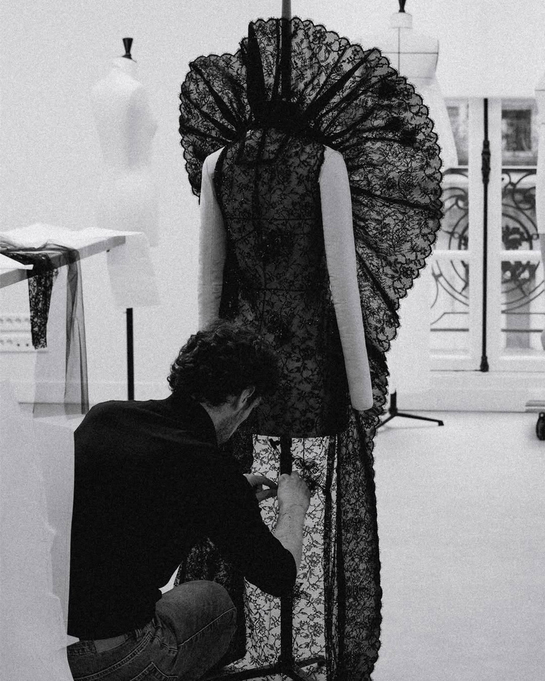 등장과 동시에 화제를 모은 사브리나의 의상들은 다름 아닌 조나단 앤더슨의 디올이었습니다. 반짝이는 빨간 미니드레스, 흰 투 피스 셋업, 그리고 검정 레이스 피스까지 모두 파리 아틀리에에서 커스텀 제작되었습니다.