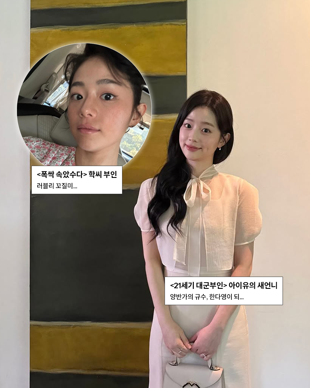 전생에선 꼬질미 넘치던 우리가, 이세계에선 ‘양반집 규수-재벌’? 이 두 여성의 조합, 언제나 환영입니다. <폭싹 속았수다>에 함께 출연했던 아이유와 채서안. <21세기 대군부인>에서 또 재회했네요.