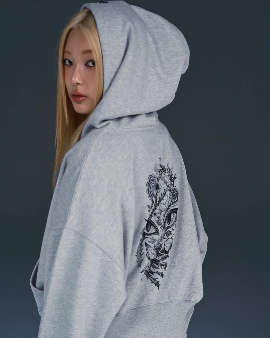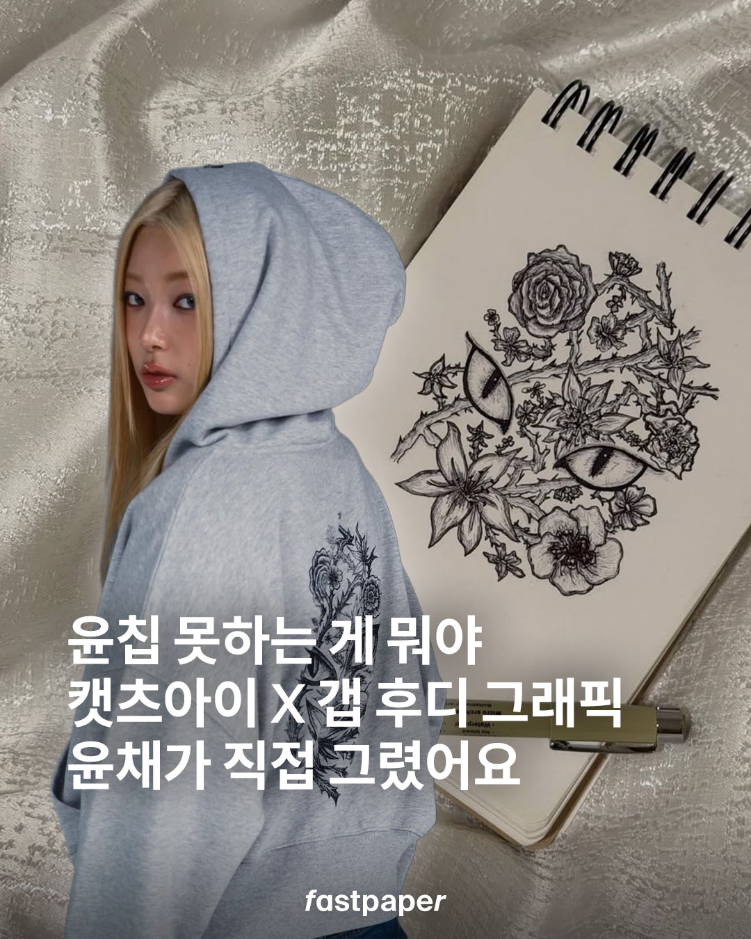 코첼라 1주차 무대를 무사히 마치고 갭과의 협업까지 발매한 캣츠아이! 이번 컬렉션은 후디를 중심으로, 각 멤버의 개성을 담아낸 디자인으로 구성됐는데요. 한국인 멤버 윤채는 소매에 태극기를 더하고, 후드티 뒷면에는 직접 디자인한 그래픽을 더했습니다.