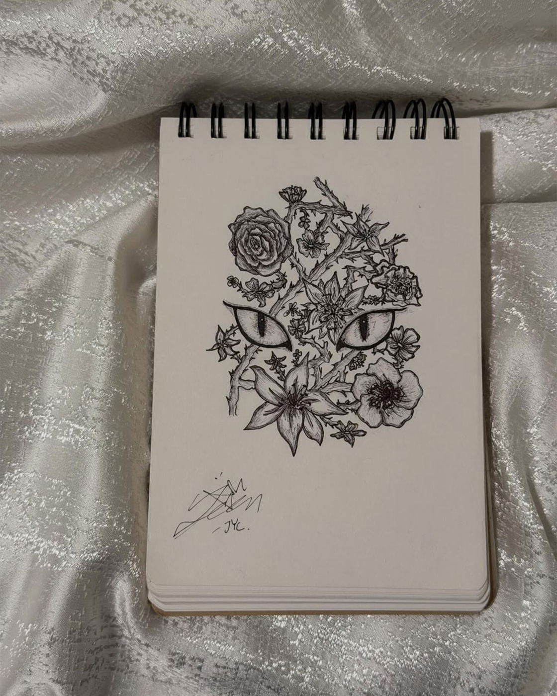 고양이 눈에서 출발해 무궁화를 더하고, ‘정윤채’라는 한글 이름까지 숨겨 완성한 커스텀 드로잉! 슬라이드를 넘겨 윤채가 직접 공개한 비하인드를 확인해 보세요.
