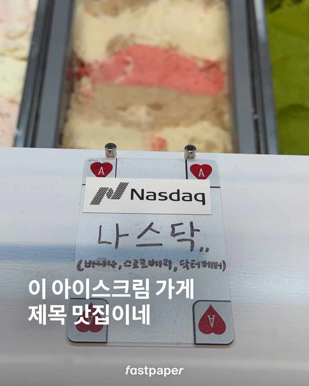 염리동과 성북동에 자리한 ‘녹기 전에’는 독특한 조합의 맛과 재미난 요소가 가득한 아이스크림 맛집입니다. 바나나, 스트로베리, 닥터 페퍼를 조합한 ‘나스닥’부터 밤과 티라미수 맛의 ‘밤티,,라미수,,’ 등 어디서도 찾아볼 수 없는 이름의 아이스크림이 가득한데요.