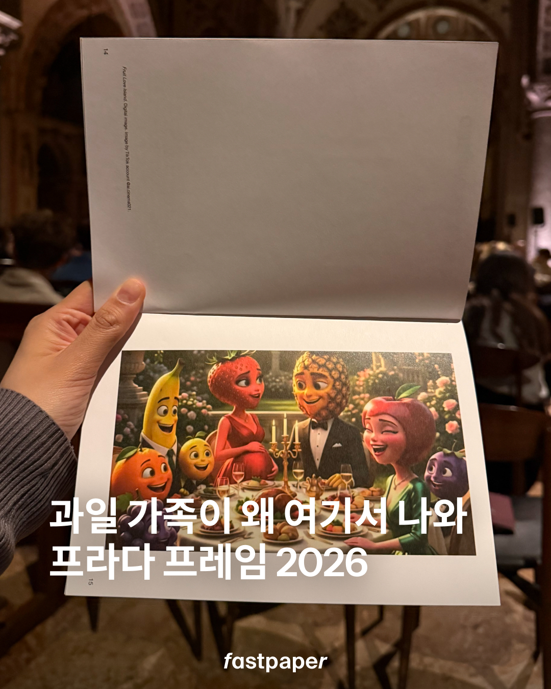 주제는 ‘In Sight’. 인간이 만든 것과 기계가 생성한 것의 경계가 무너진 지금, 이미지가 더 이상 사실의 증거가 되지 못하는 시대를 정면으로 다뤘는데요. 책자엔 틱톡 바이럴 Fruit Love Island 과일 가족 이미지가 있기도.