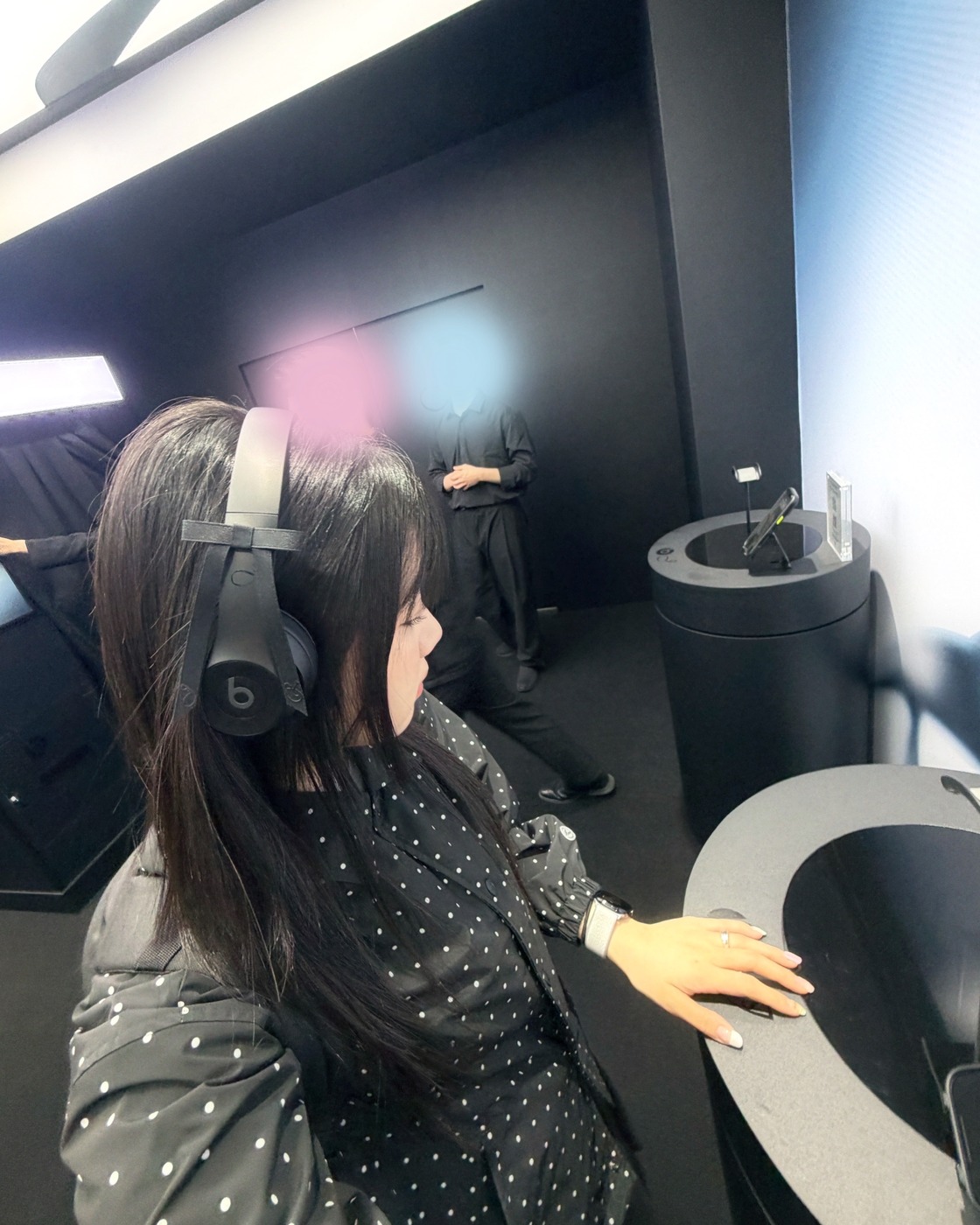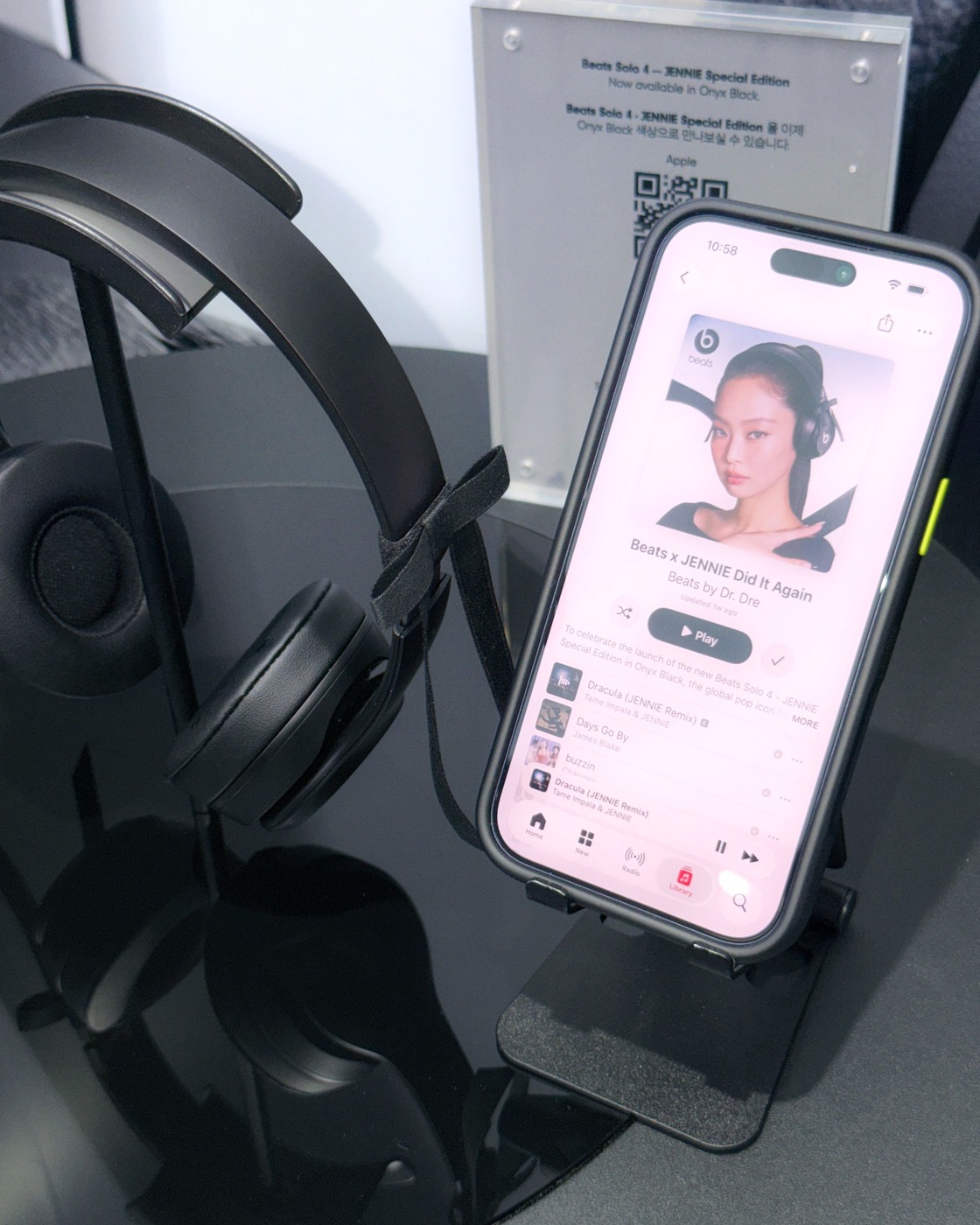 이번 팝업은 스페셜 에디션의 시그니처를 담은 공간으로, 오닉스 블랙 컬러로 돌아온 비츠 솔로 4의 사운드를 경험할 수 있어요. 현장에선 제니가 큐레이션한 애플 뮤직 플레이리스트를 경험하고 헤드폰 케이스를 꾸미는 체험까지 가능합니다.