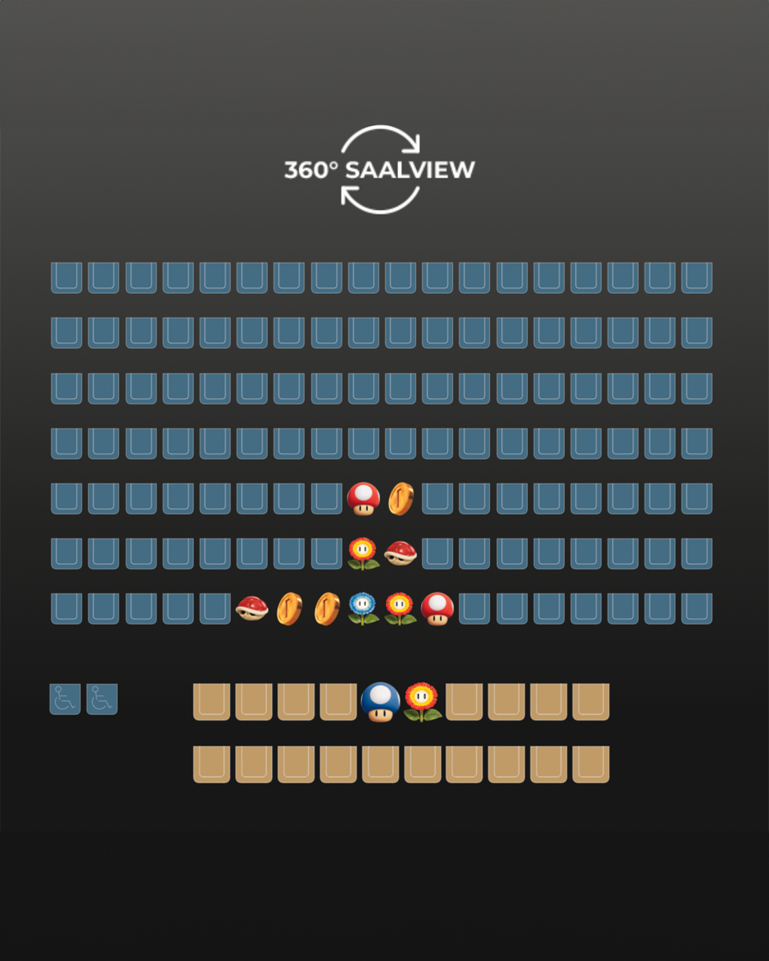 4월 29일 국내 개봉을 앞둔 영화 <슈퍼 마리오 갤럭시>! 해외에서는 이미 절찬 리에 상영 중인데요. 독일 영화관 마테저 필름파라스트(Mathäser Filmpalast)의 좌석 선택 사이트에는 보다 특별한 좌석들을 확인할 수 있습니다.