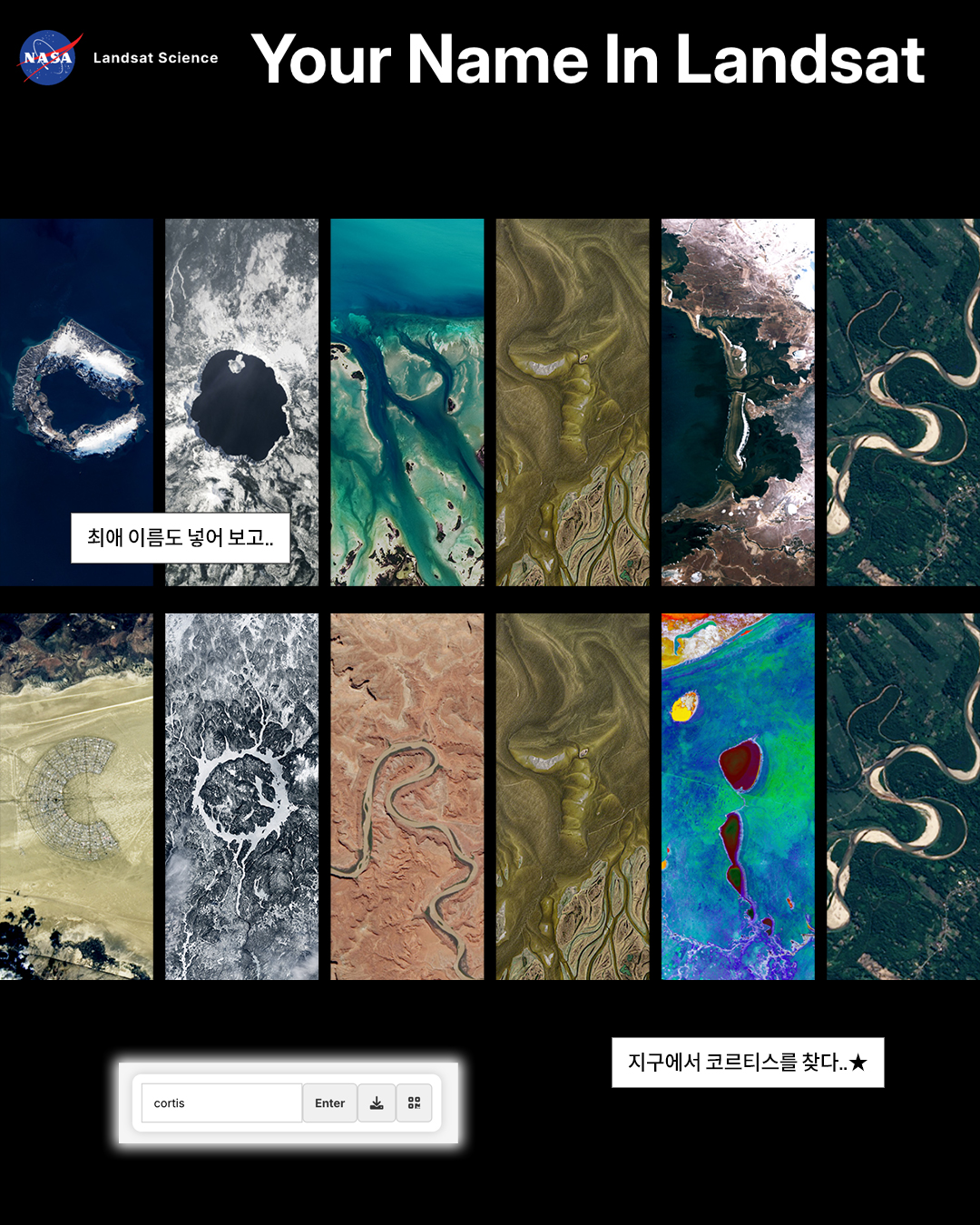 NASA가 위성사진으로 이름을 만들어주는 사이트, 아시나요? 바로 ‘Your Name In Landsat’인데요.