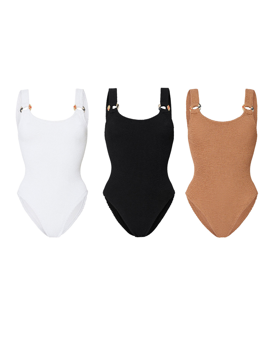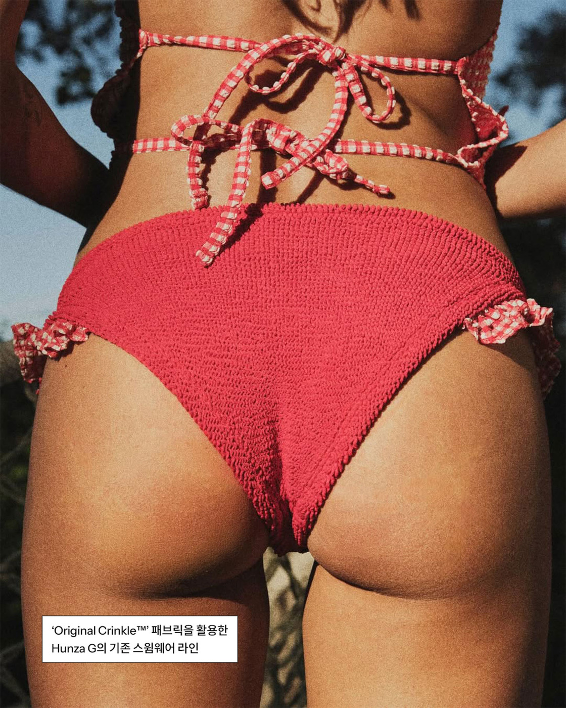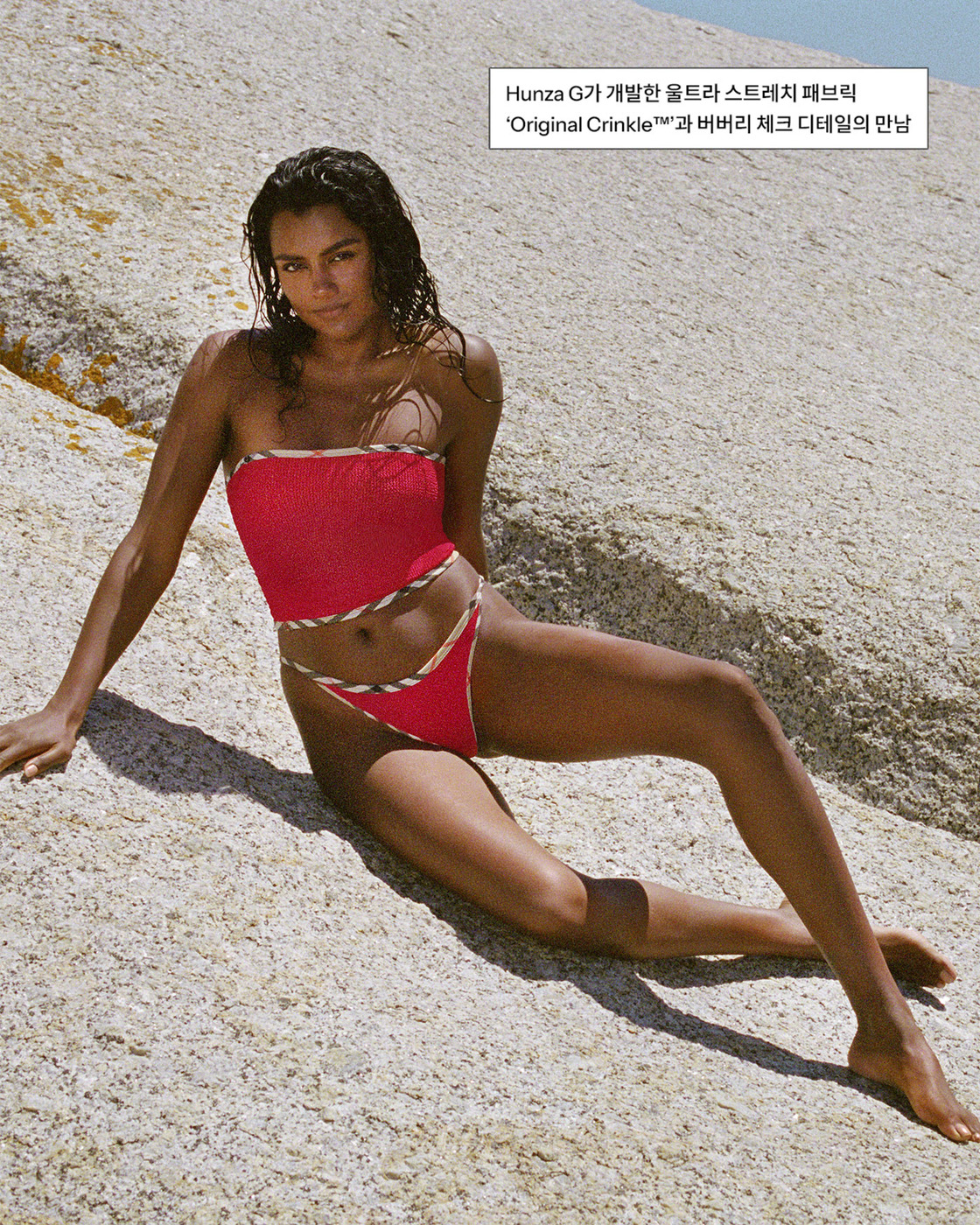 Original Crinkle™ 스윔웨어는 한 벌당 900만 개 이상의 스티치로 제작되어, 단 하나의 사이즈로도 다양한 체형을 자연스럽게 커버하는 것이 특징입니다. 훈자 지의 크리에이티브 디렉터 조지아나 허다트는 이번 콜라보에 대해 “여성이 가장 자신감 있는 모습을 느낄 수 있도록 하는 데 집중해왔다”며, “여기에 버버리의 헤리티지를 자연스럽게 더해, 힘을 뺀 듯하면서도 특별한 결과물을 만들고자 했다”고 전했습니다.