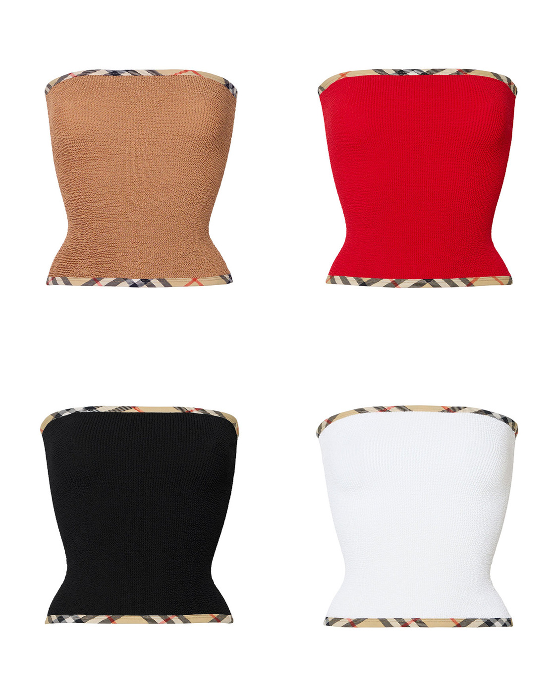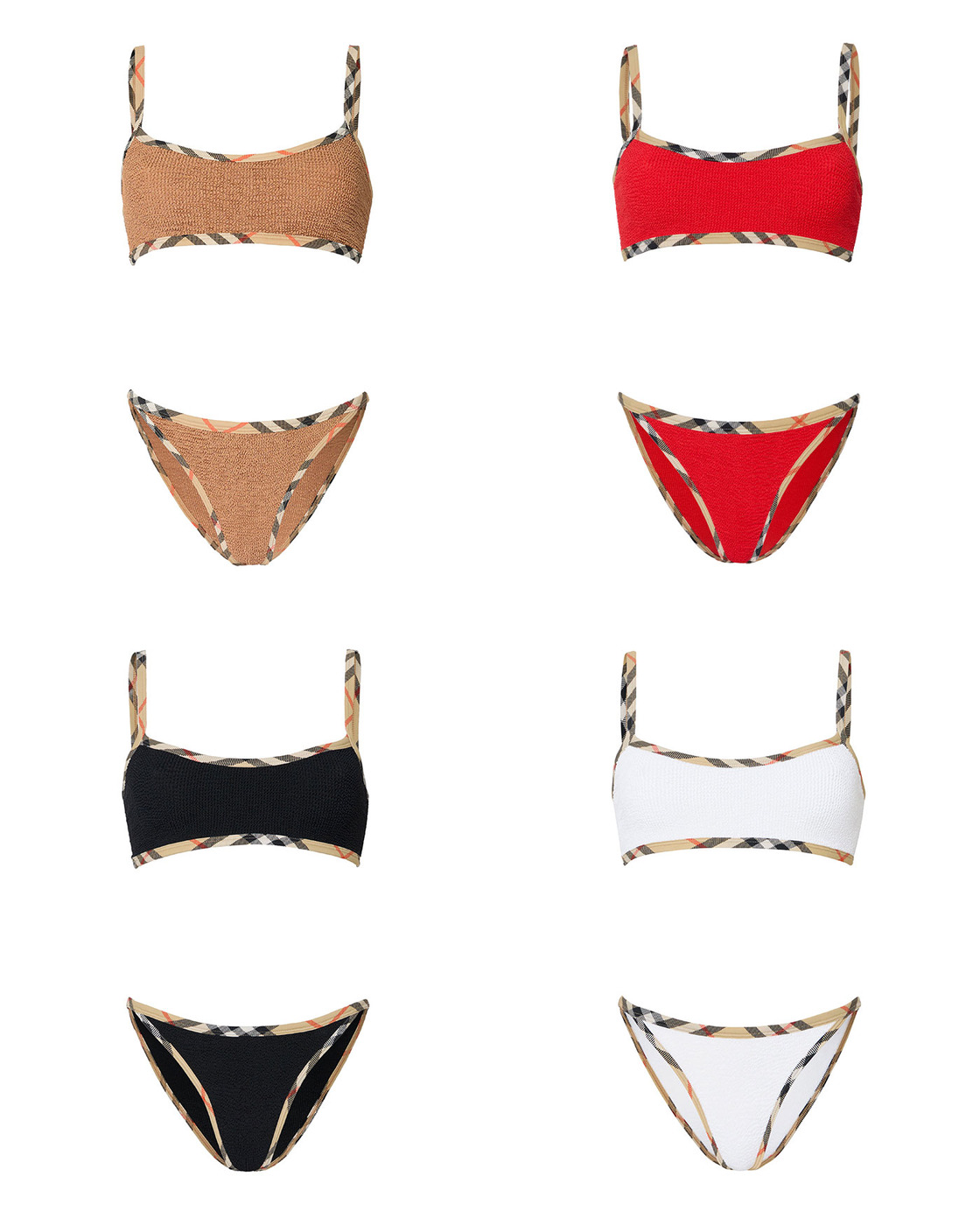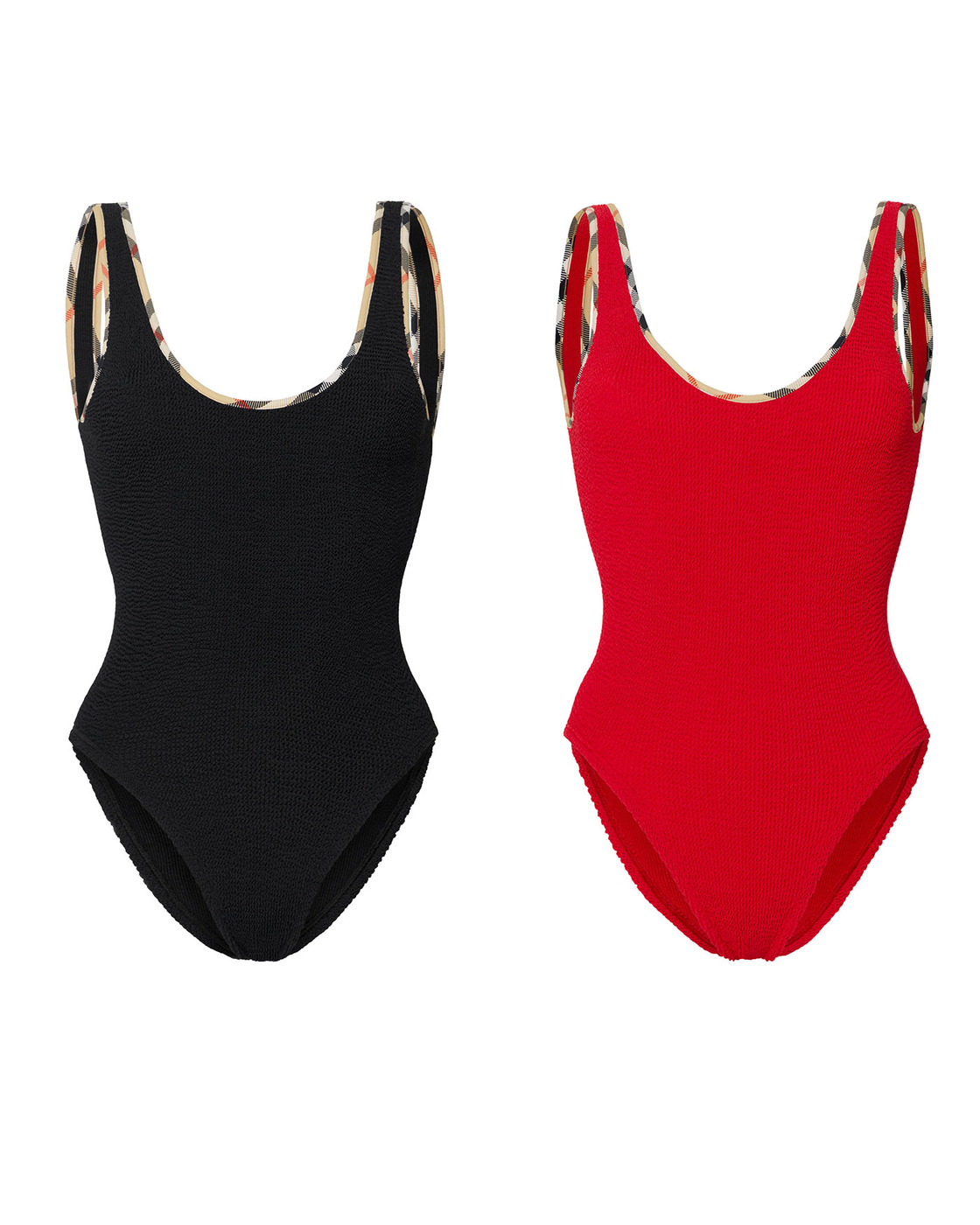 이번 라인은 영국 스윔웨어 브랜드 훈자 지(Hunza G)와의 협업으로 탄생했는데요. 브랜드를 대표하는 울트라 스트레치 패브릭인 Original Crinkle™ 소재를 활용해, 버버리의 체크 디테일을 더해 완성됐습니다.