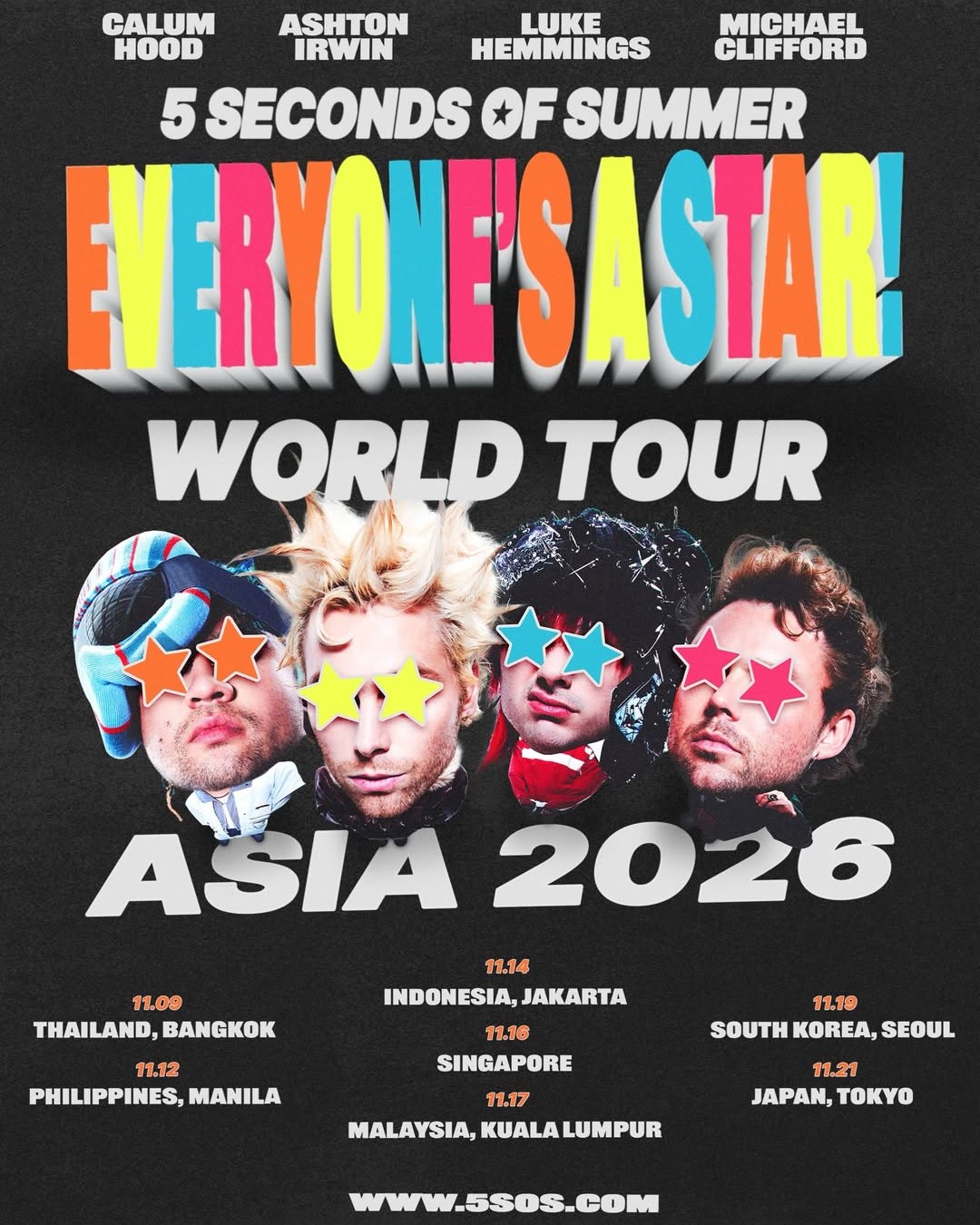 5 세컨즈 오브 서머가 아시아 투어 일정 공개했습니다. ‘EVERYONE’S A STAR’ 월드투어로 돌아오는데요. 서울 공연은 11월 19일!!..