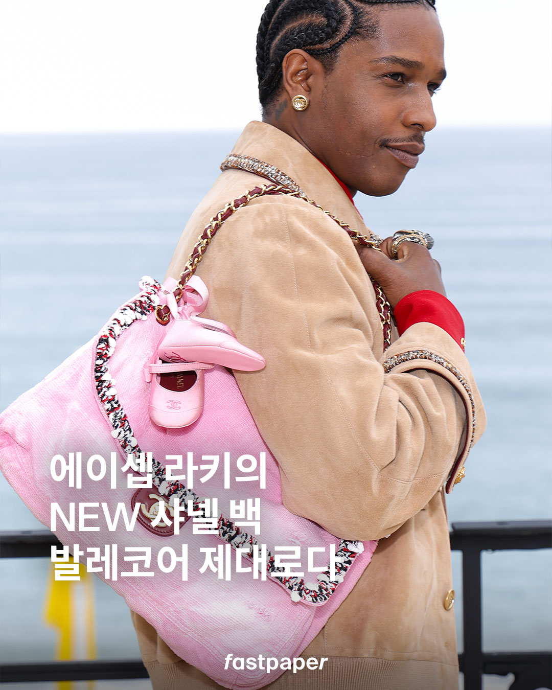 마티유 블라지가 선보이는 샤넬 2026/27 크루즈 컬렉션을 보기 위해 프랑스 비아리츠를 찾은 에이셉 라키! 그가 쇼에 들고 등장한 핸드백이 화제를 모으고 있습니다. 화사한 핑크 컬러의 맥시 플랩 백, 스트랩에는 초미니 샤넬 발레리나 플랫이 달려 있는데요. 지난 9월에 태어난 딸 라키를 위한 선물인 걸까요?
