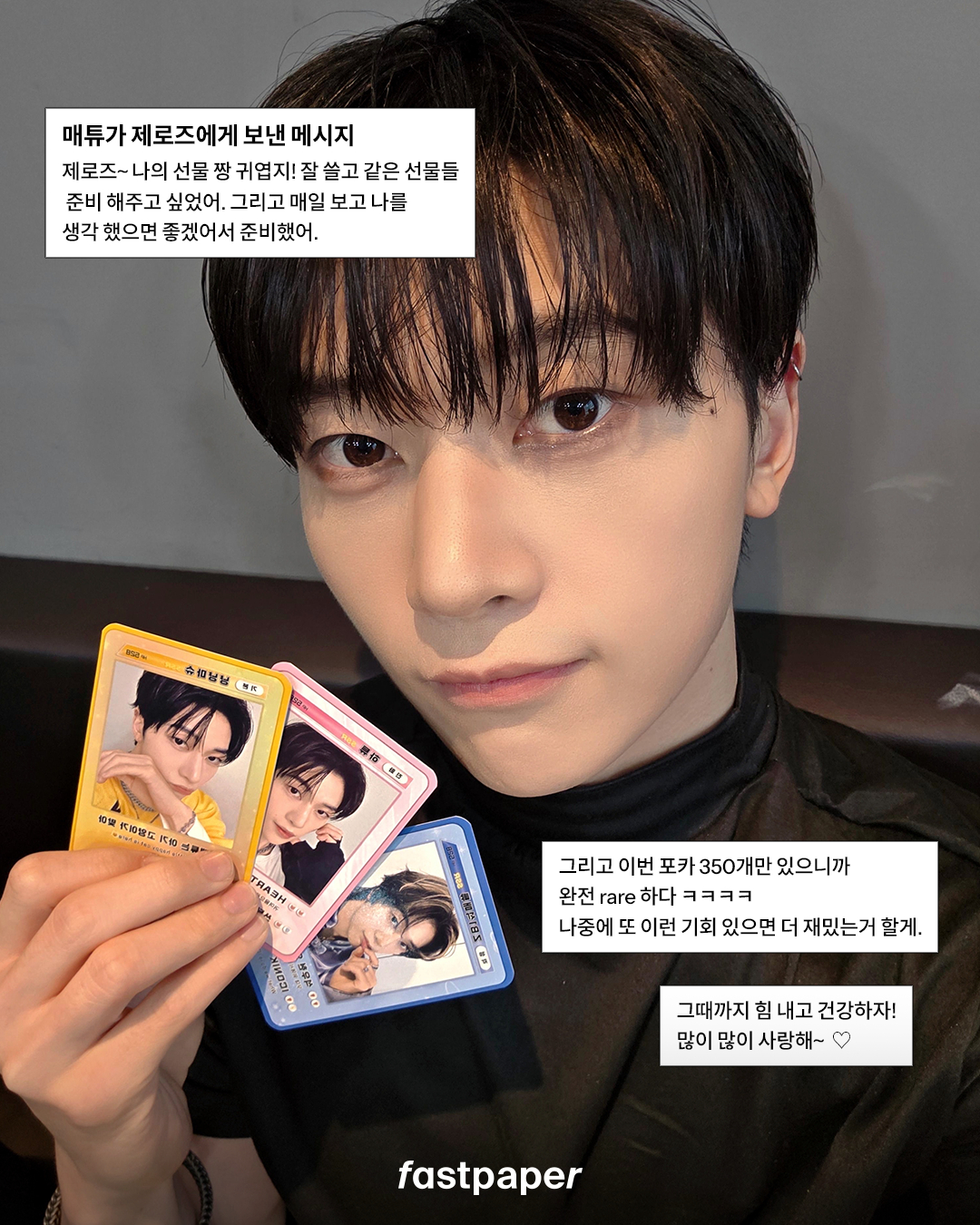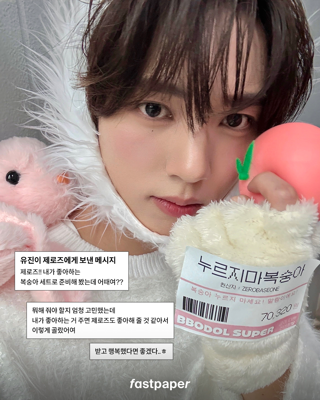 음악 방송마다 제로베이스원 멤버들은 1명씩 돌아가며 제로즈를 위한 선물을 준비했었죠. 지난번 패페가 소개했던 리더 성한빈을 시작으로 멤버들은 각자 개성이 담긴 아이템을 직접 준비했는데요. 특히 마지막 방송인 어제는 앨범 콘셉트와 활동 마무리라는 의미를 담은 키즈 카메라를 선물했다고. (이 카메라 속에는 멤버들의 셀프 영상 편지가 담긴 SD카드도 포함되어 있었다고 합니다…아 부러워;) 이러니까 제로즈에겐 원 앤 온리 제베원 뿐이죠^_ㅠ